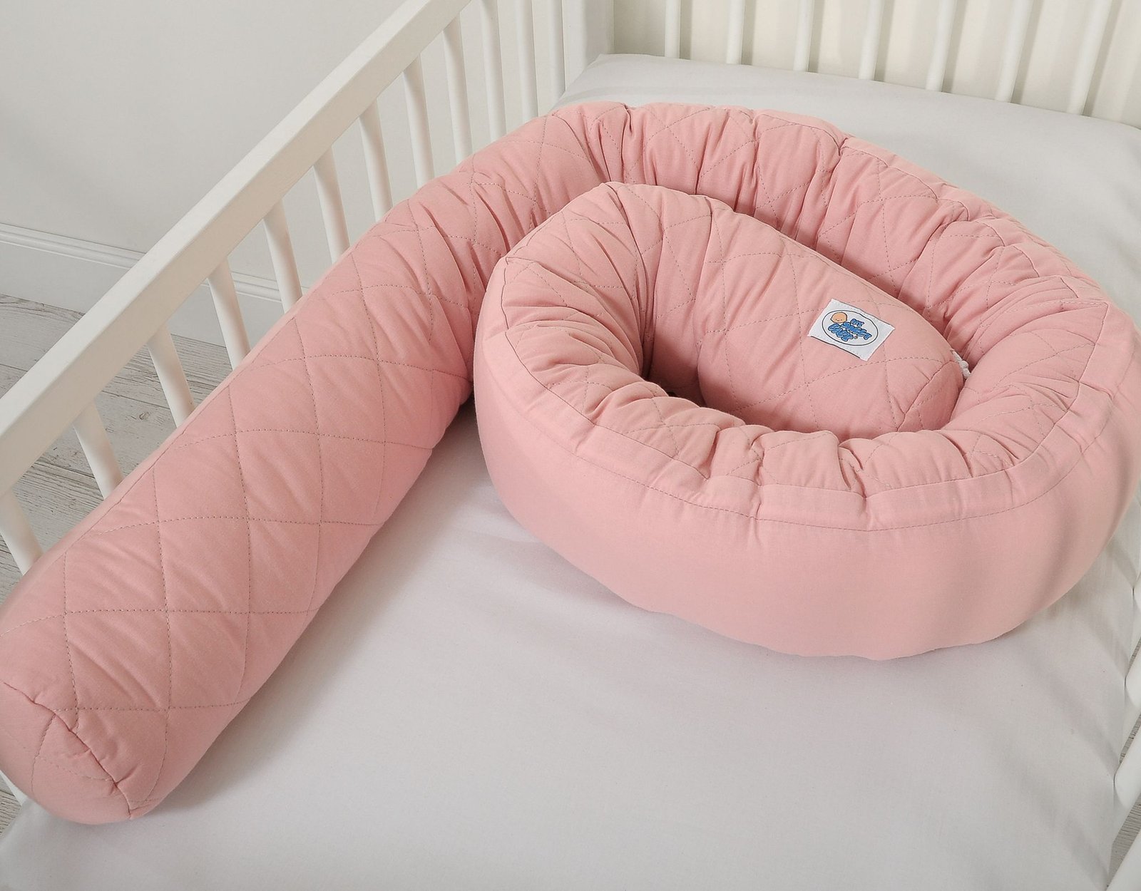 The cocoon has a removable roller with a length of 220cm and a diameter of about 12cm, which can later be used as a cot bumper. The material of which the roller is sewn is quilted fabric made of 100% cotton. The filling is a special certified fibre – a soft and breathable ECO FILLBALL. They are thin soft fibers formed into small balls with additional ventilation channels.