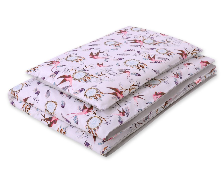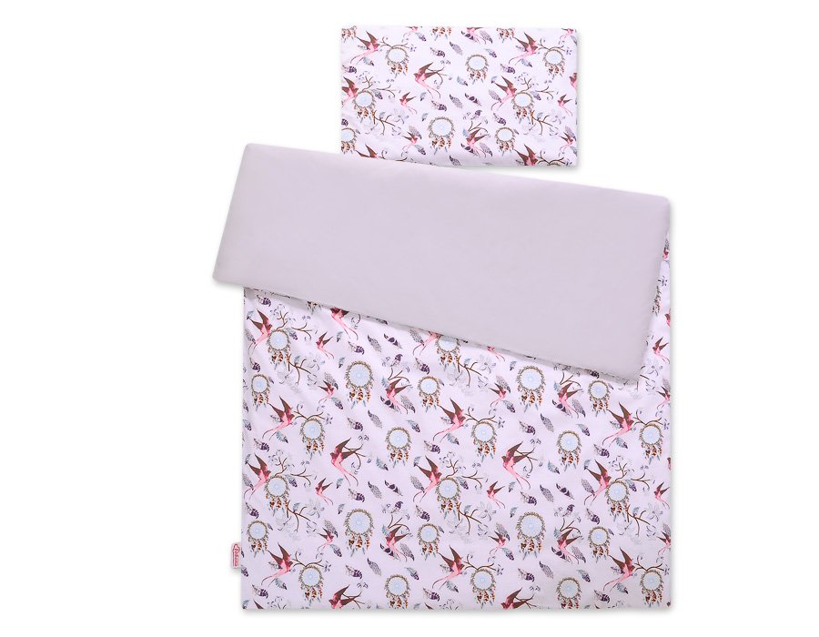 Baby cotton bedding set 2-pcs 120×90 cm- swallows pink