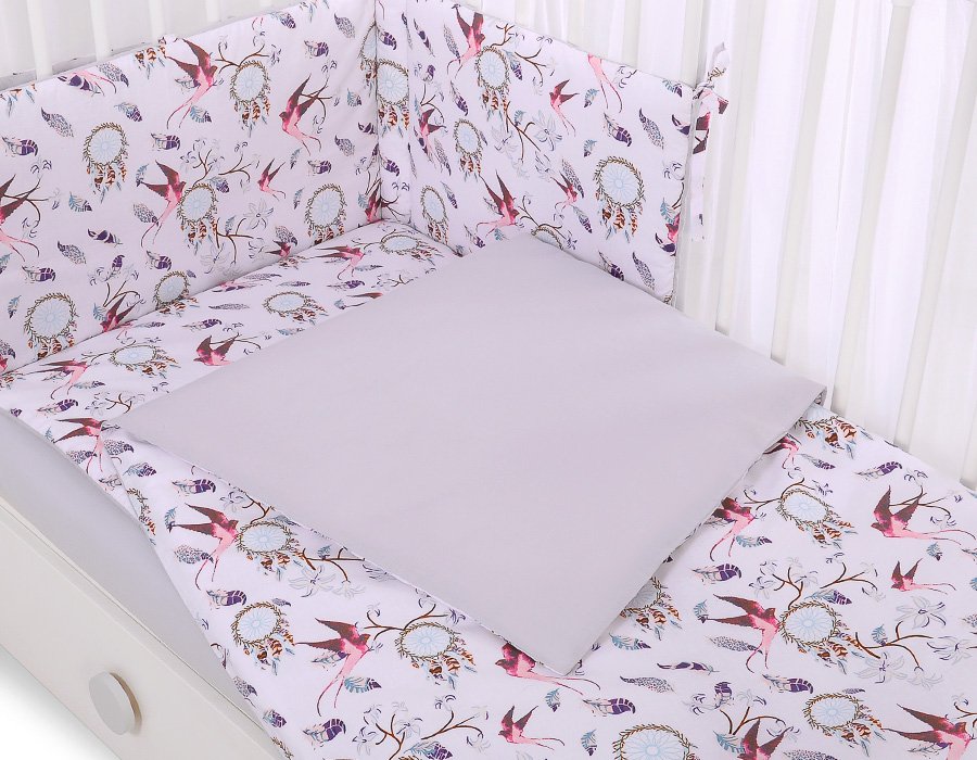 Baby bedding for the cot. Made of durable 100% certified cotton of the highest quality. It is nice and pleasant to the touch. It does not irritate your baby’s delicate skin. In this bedding your baby will sleep peacefully and safely.