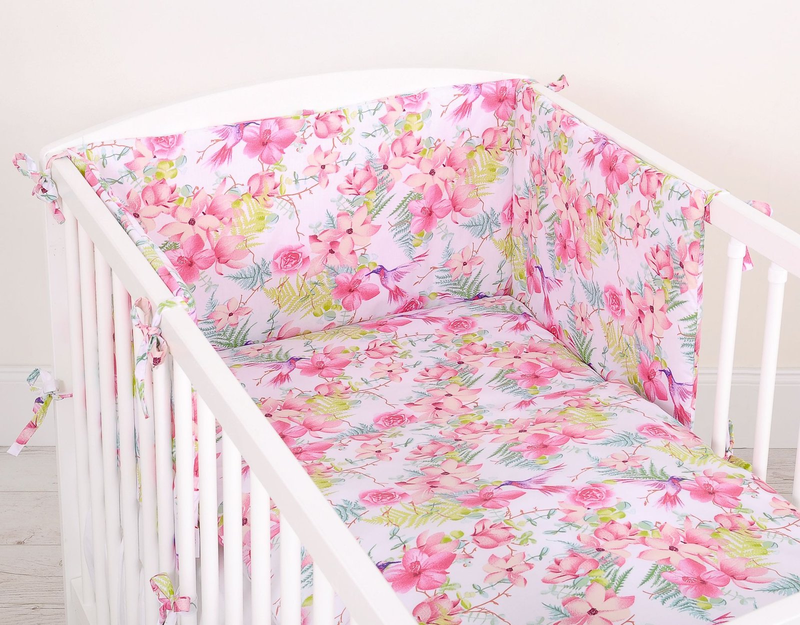 Baby cotton bedding set 2-pcs 120x90cm- hummingbirds in flowers