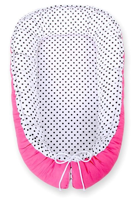 Baby nest double-sided Premium Cocoon for infants BOBONO- balck dots/ dark pink