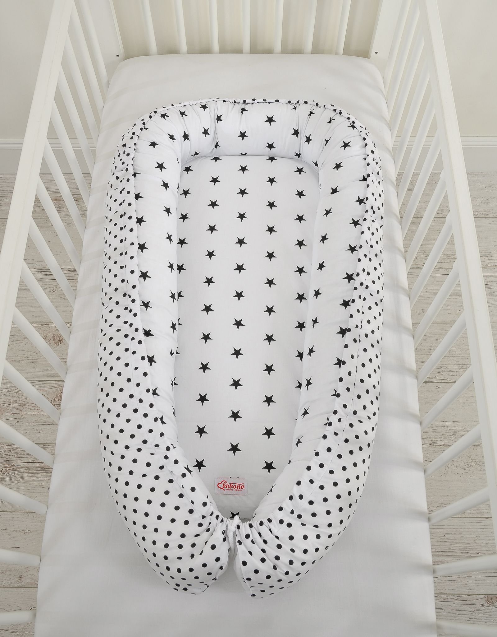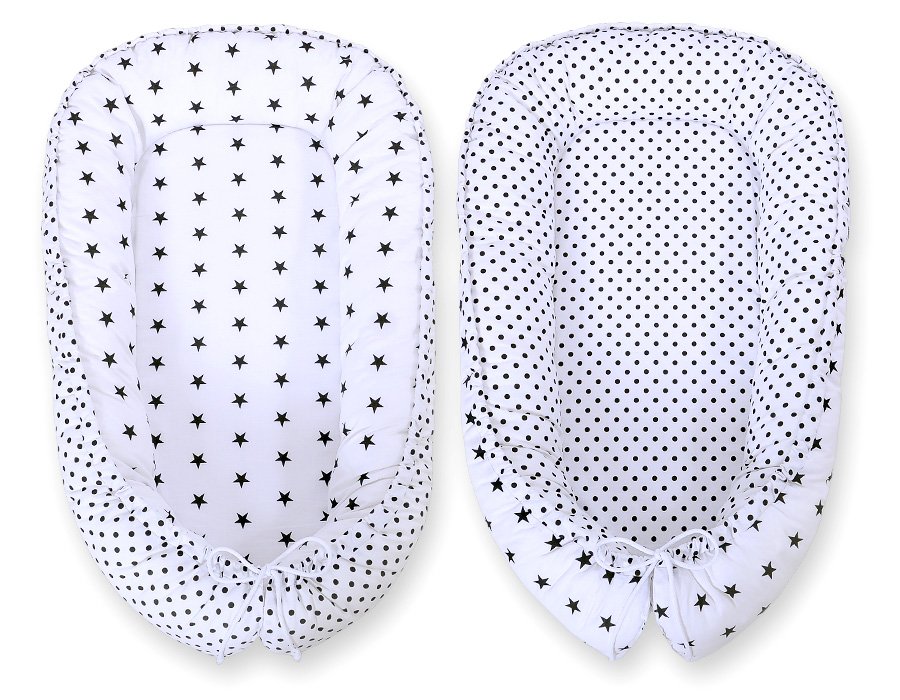 Baby nest double-sided Premium Cocoon for infants BOBONO- black stars/ dots