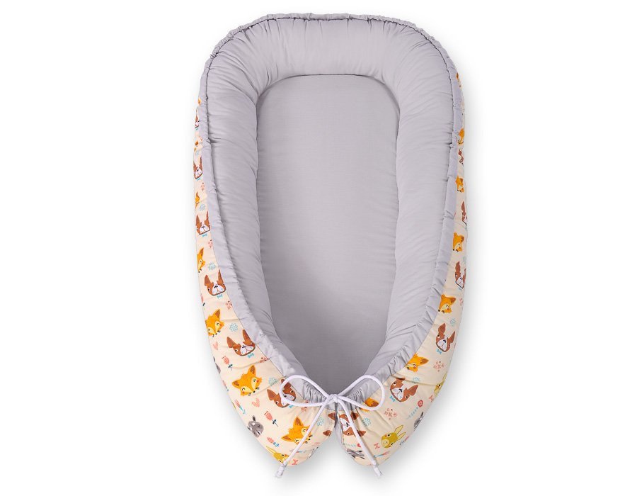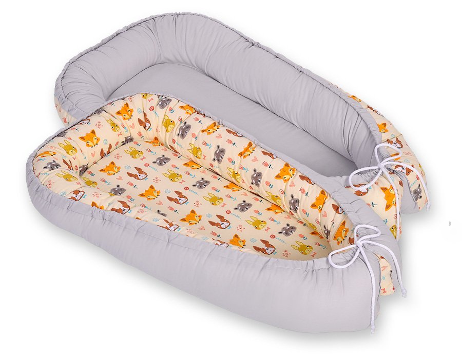Baby nest double-sided Premium Cocoon for infants BOBONO- cream animals
