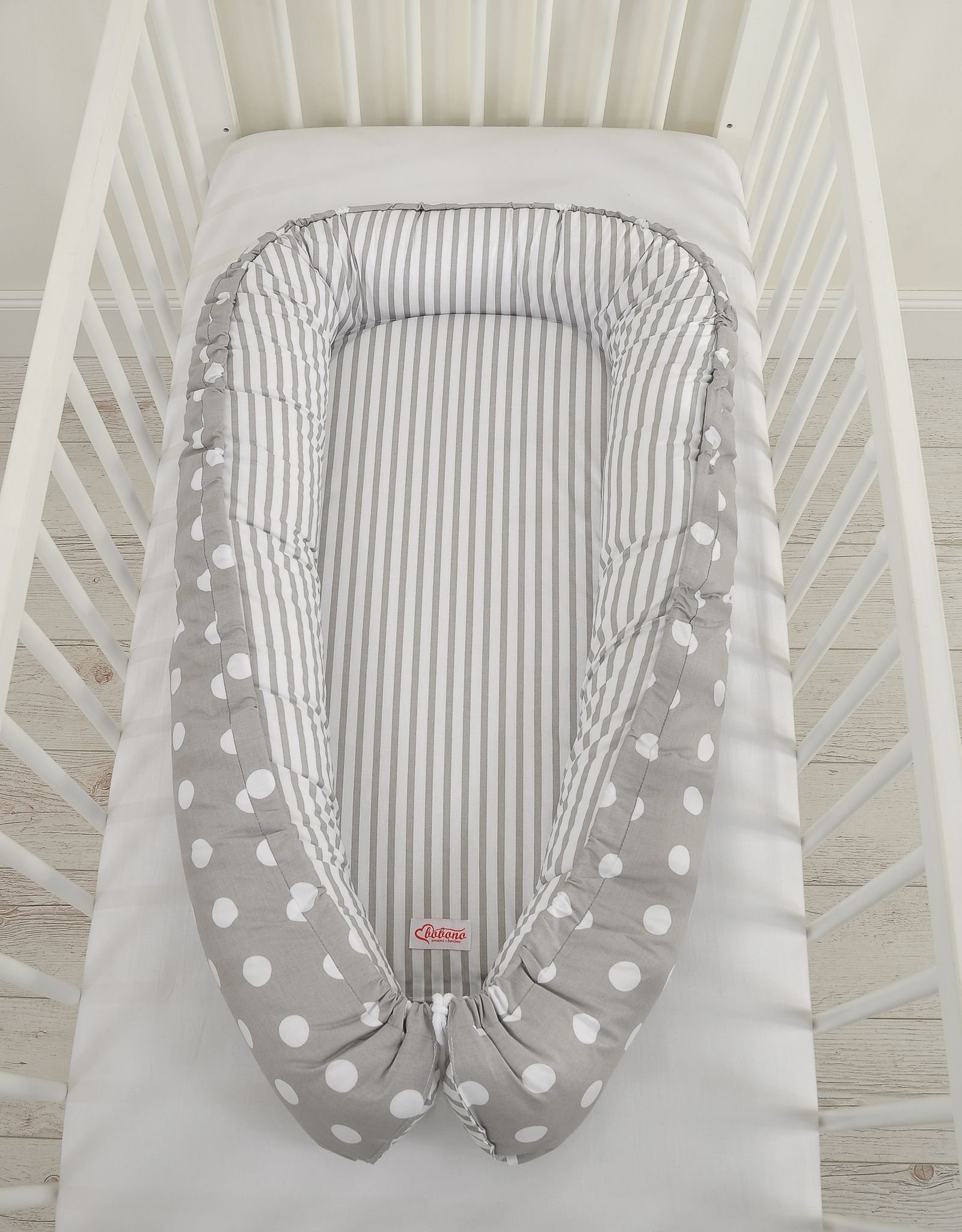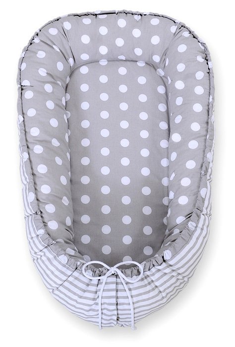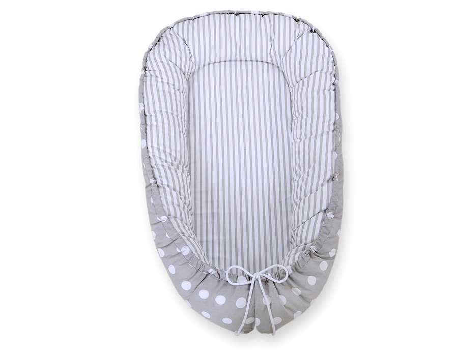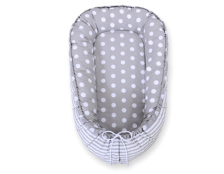 Baby nest double-sided Premium Cocoon for infants BOBONO- dots on grey/ grey strips