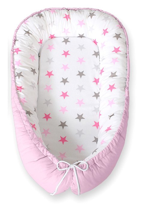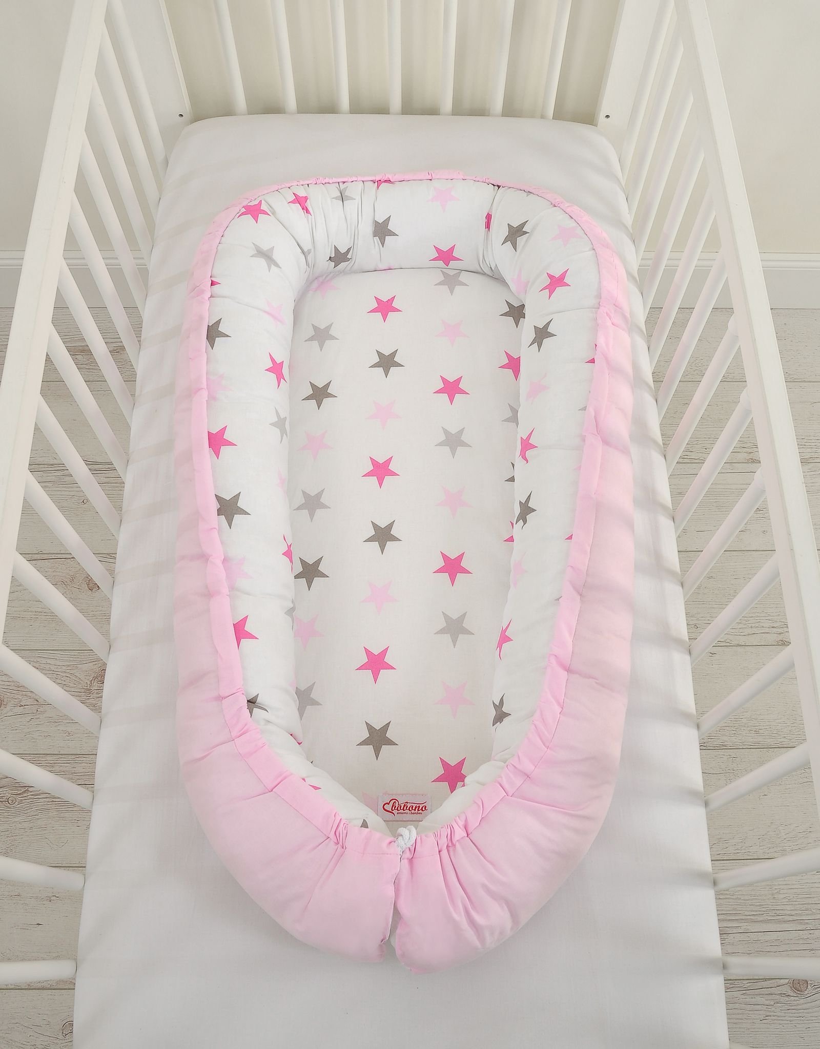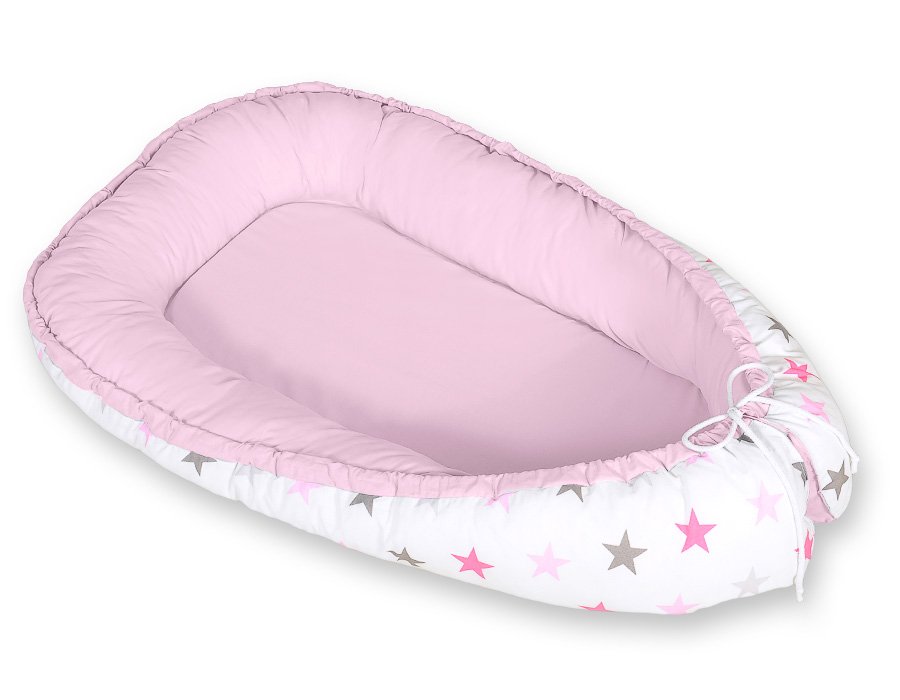 Baby nest double-sided Premium Cocoon for infants BOBONO- gray-pink stars/ gray