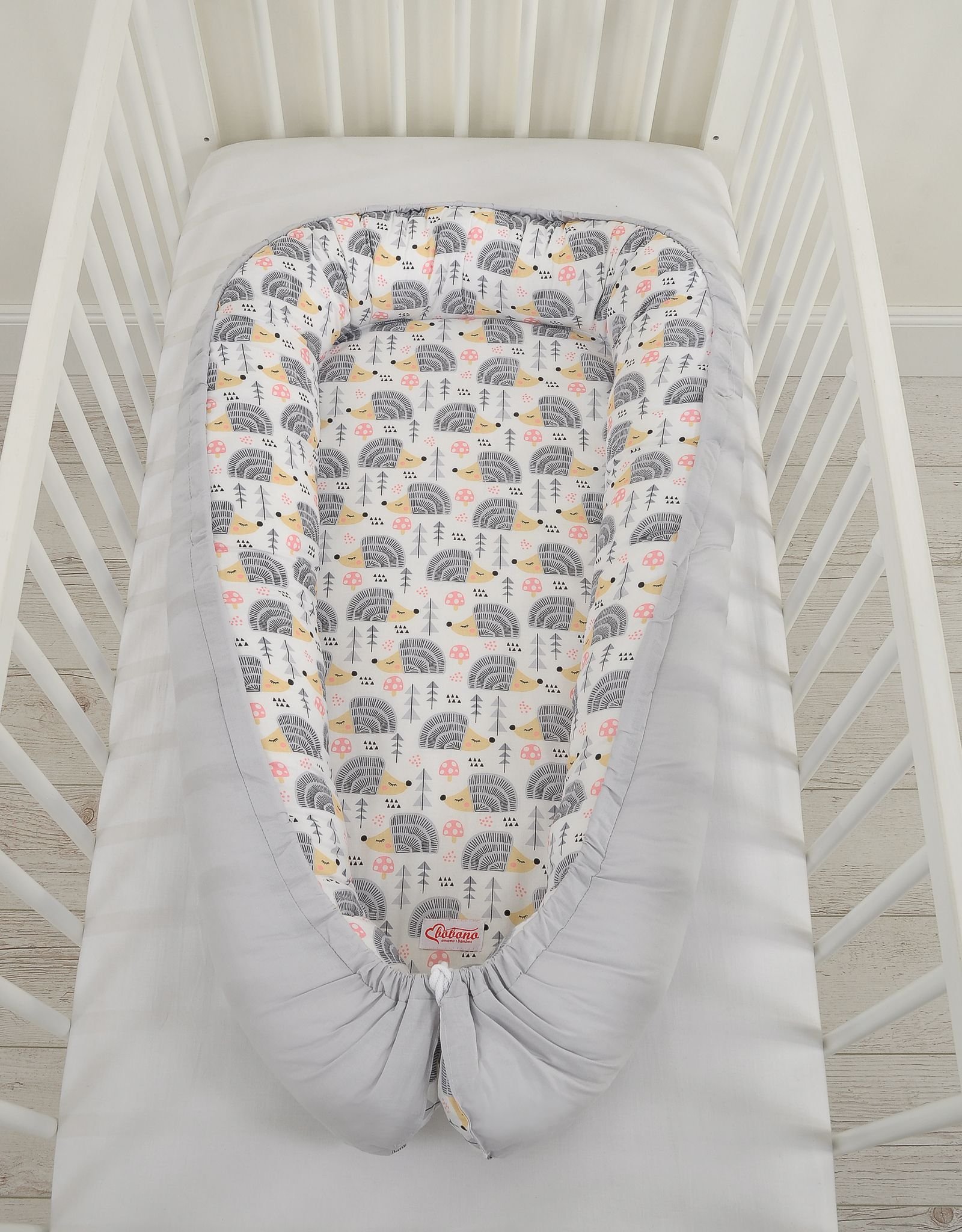 Double-sided premium baby cocoon. Made of the highest quality Okotex certified cotton fabric. Filling – also Okotex certified, without optical brighteners.