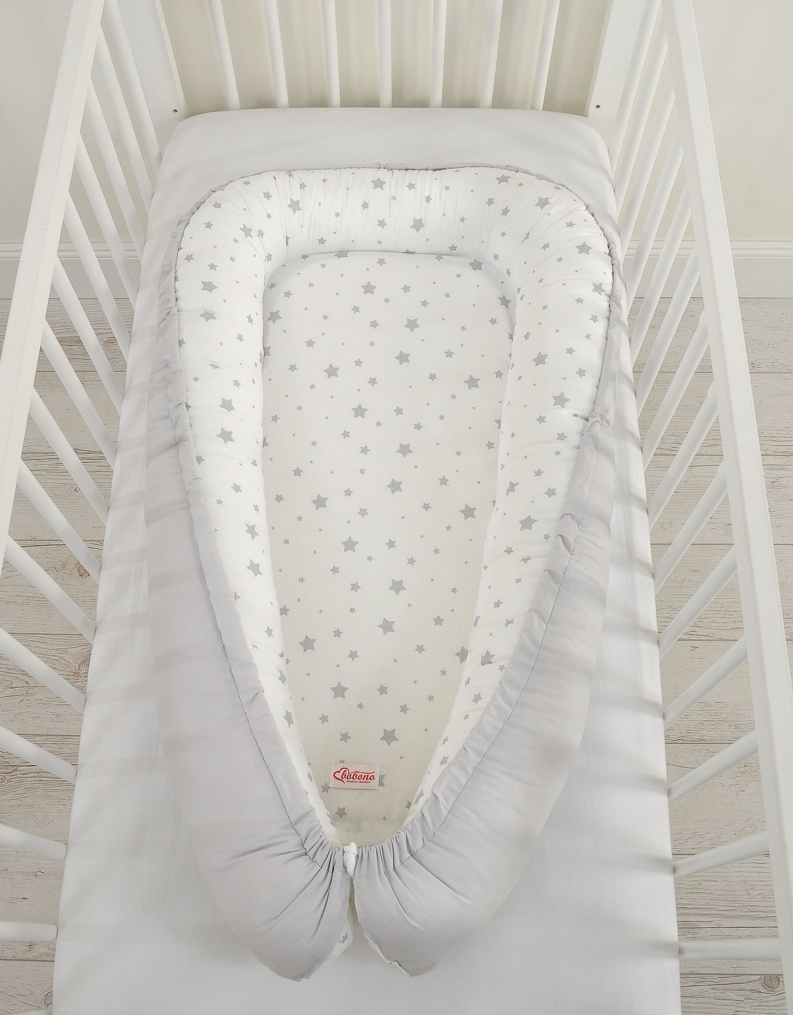 Double-sided premium baby cocoon. Made of the highest quality Okotex certified cotton fabric. Filling – also Okotex certified, without optical brighteners.
