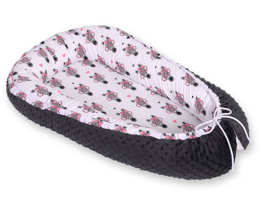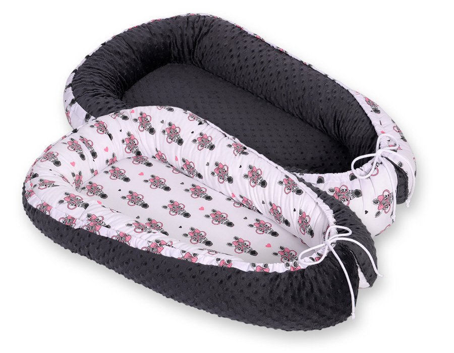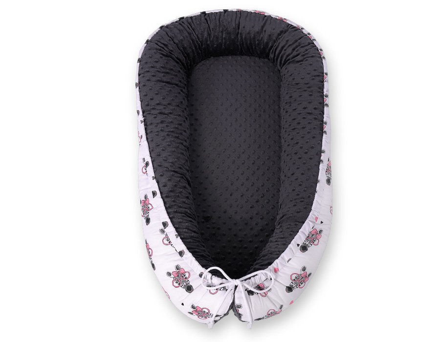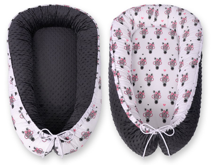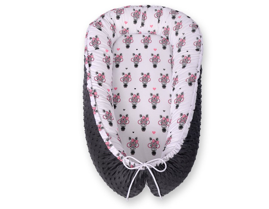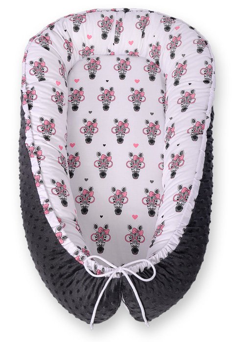 Baby nest double-sided Premium Cocoon for infants BOBONO minky- pink zebras