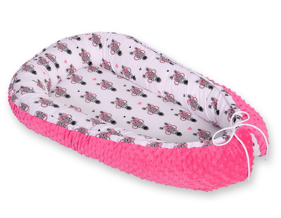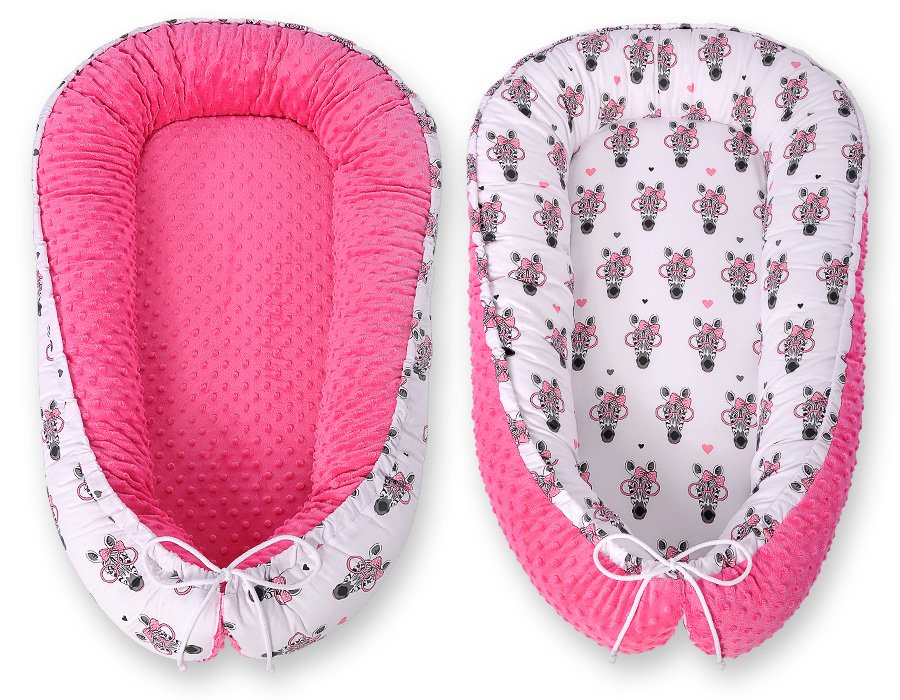 Baby nest double-sided Premium Cocoon for infants BOBONO minky- pink zebras