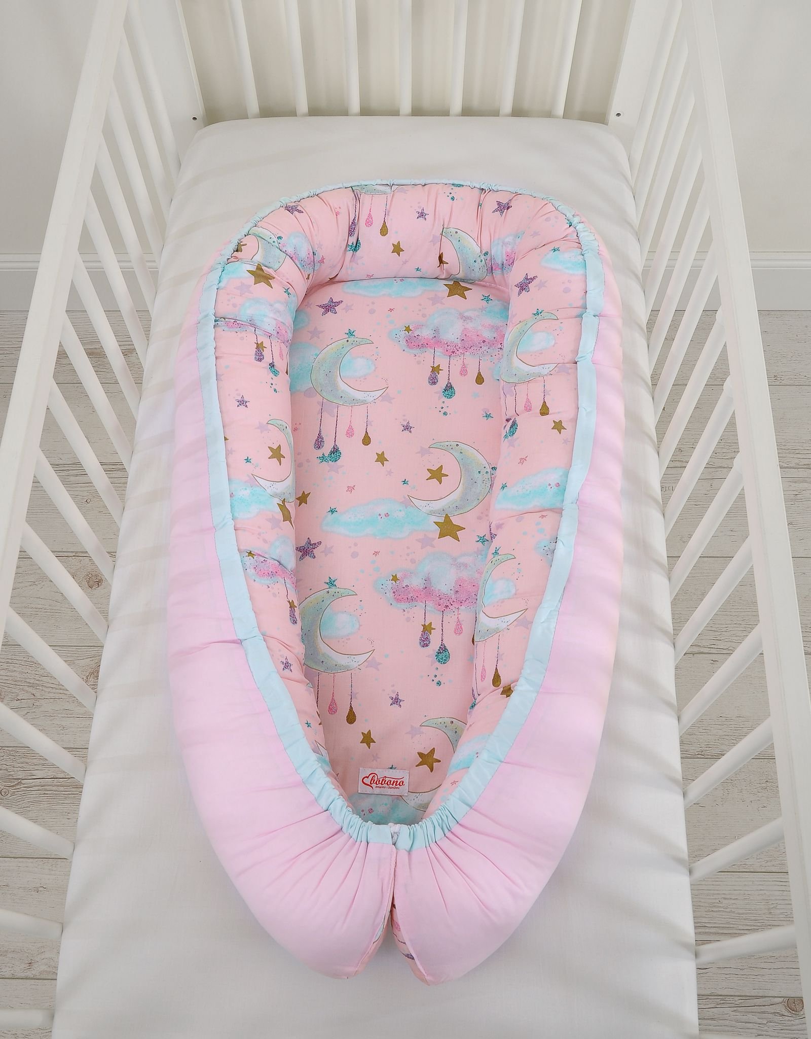 Baby nest double-sided Premium Cocoon for infants BOBONO- moons pink