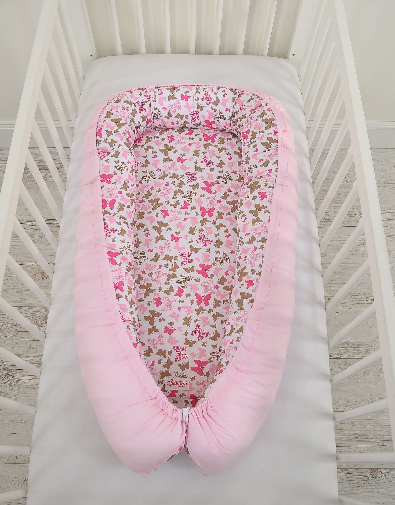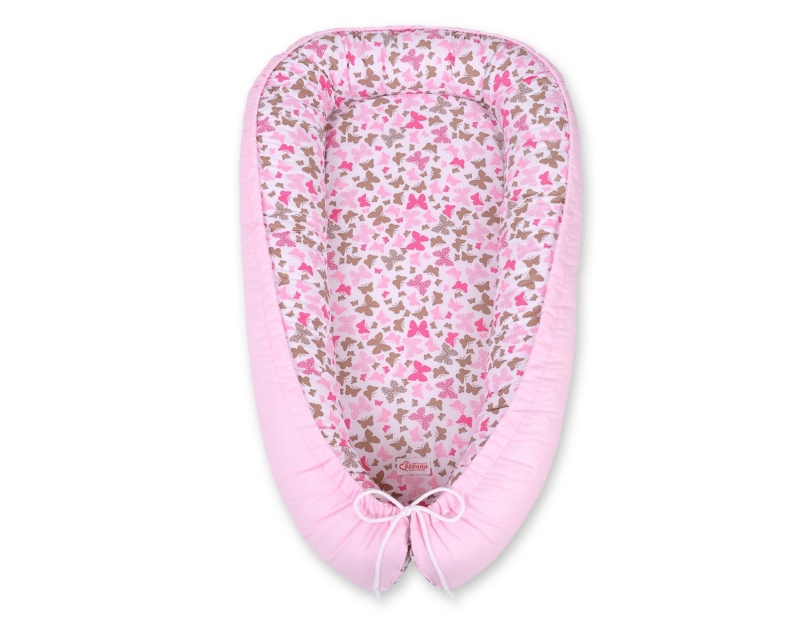 Baby nest double-sided Premium Cocoon for infants BOBONO- pink butterflies/pink