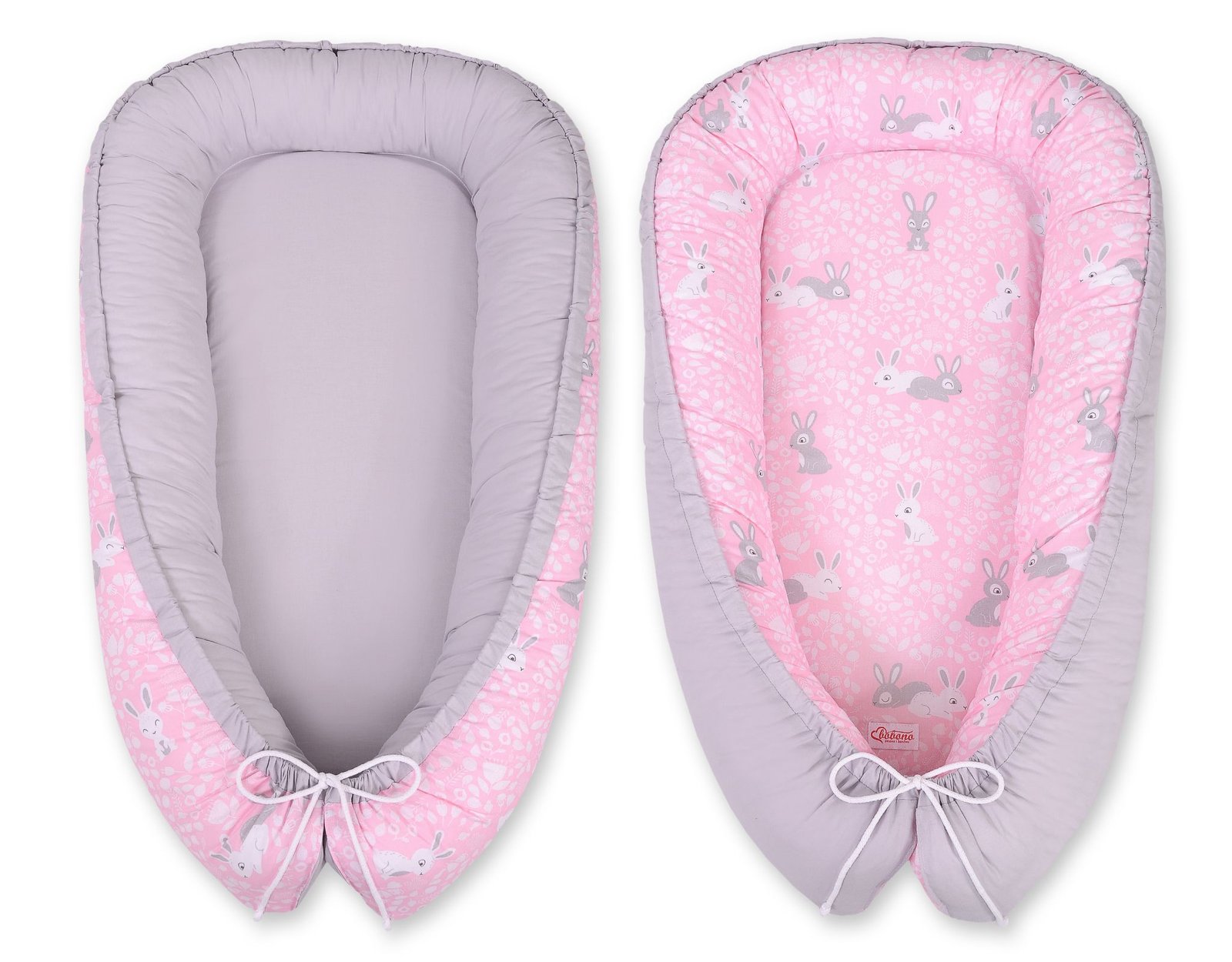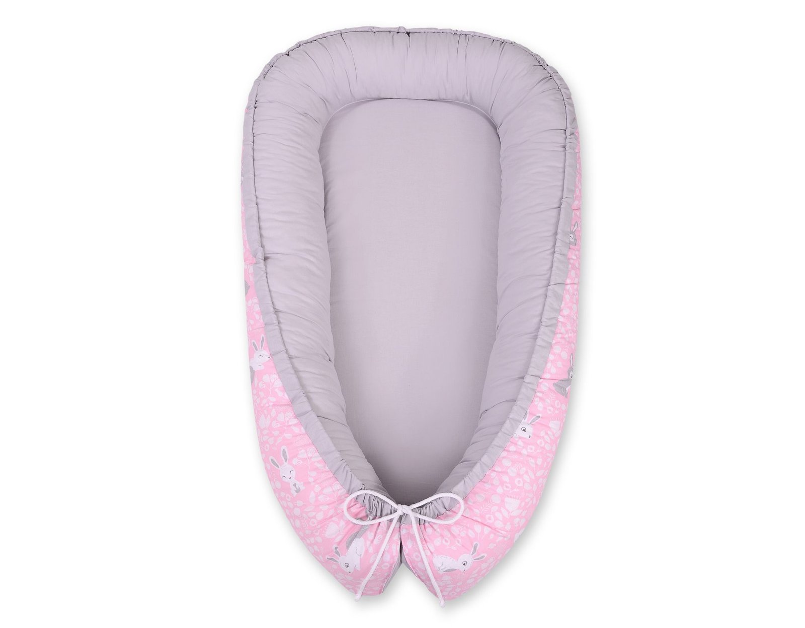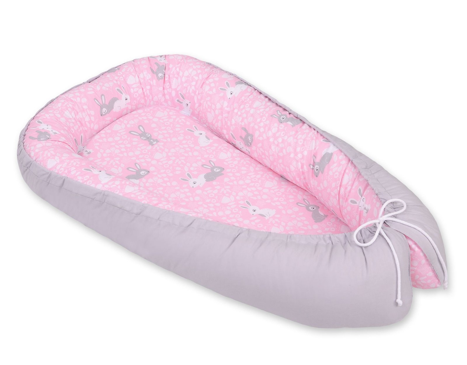 Baby nest double-sided Premium Cocoon for infants BOBONO- pink rabbits/gray