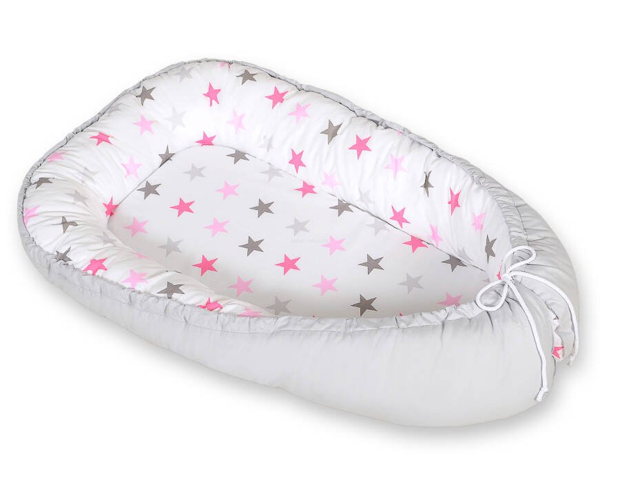 Baby nest double-sided Premium Cocoon for infants BOBONO- stars pink-grey/grey
