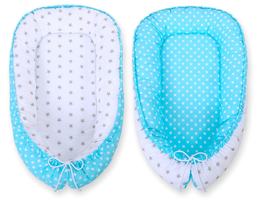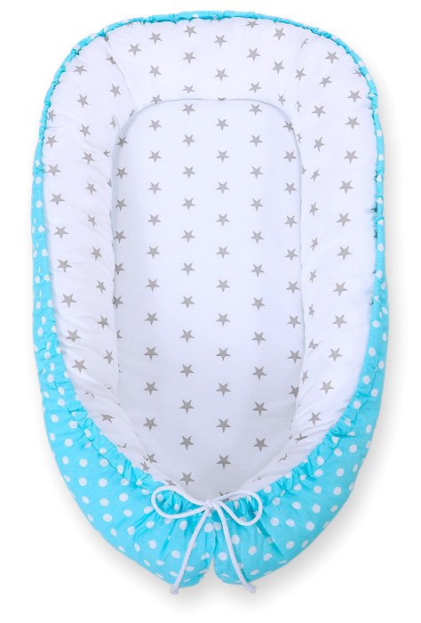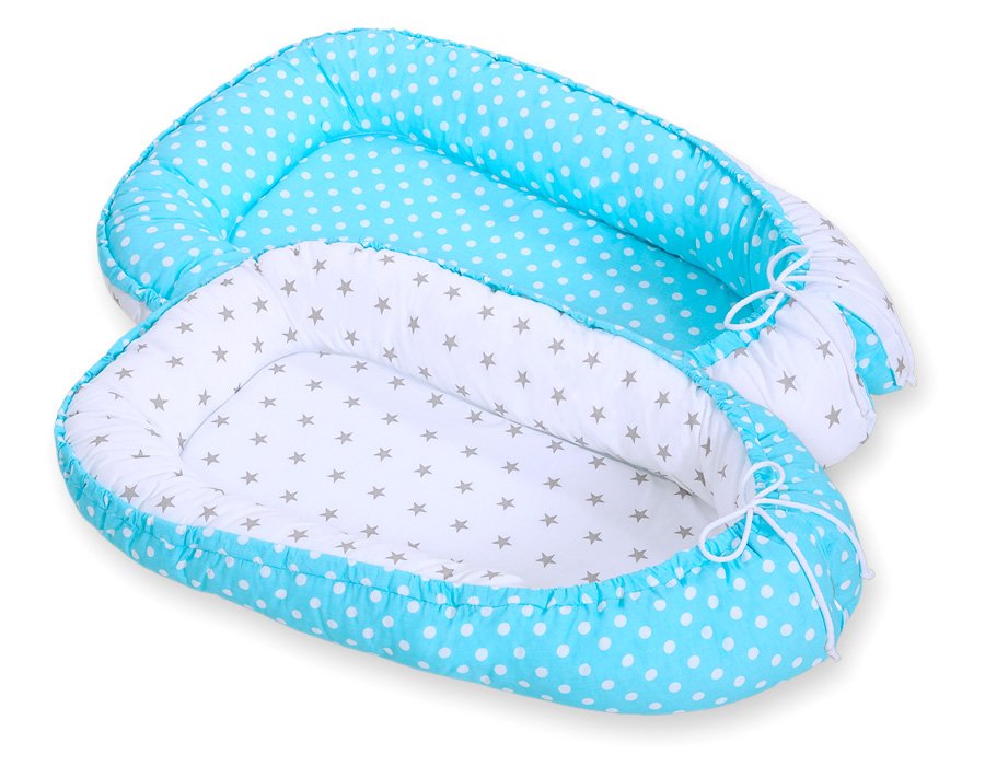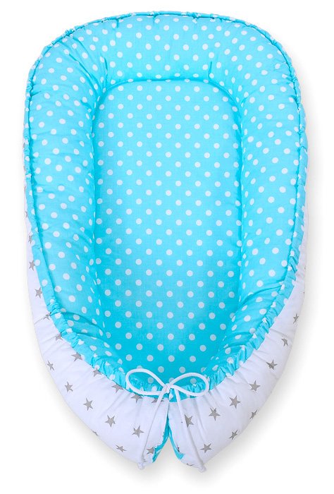 Baby nest double-sided Premium Cocoon for infants BOBONO- white dots/ grey stars