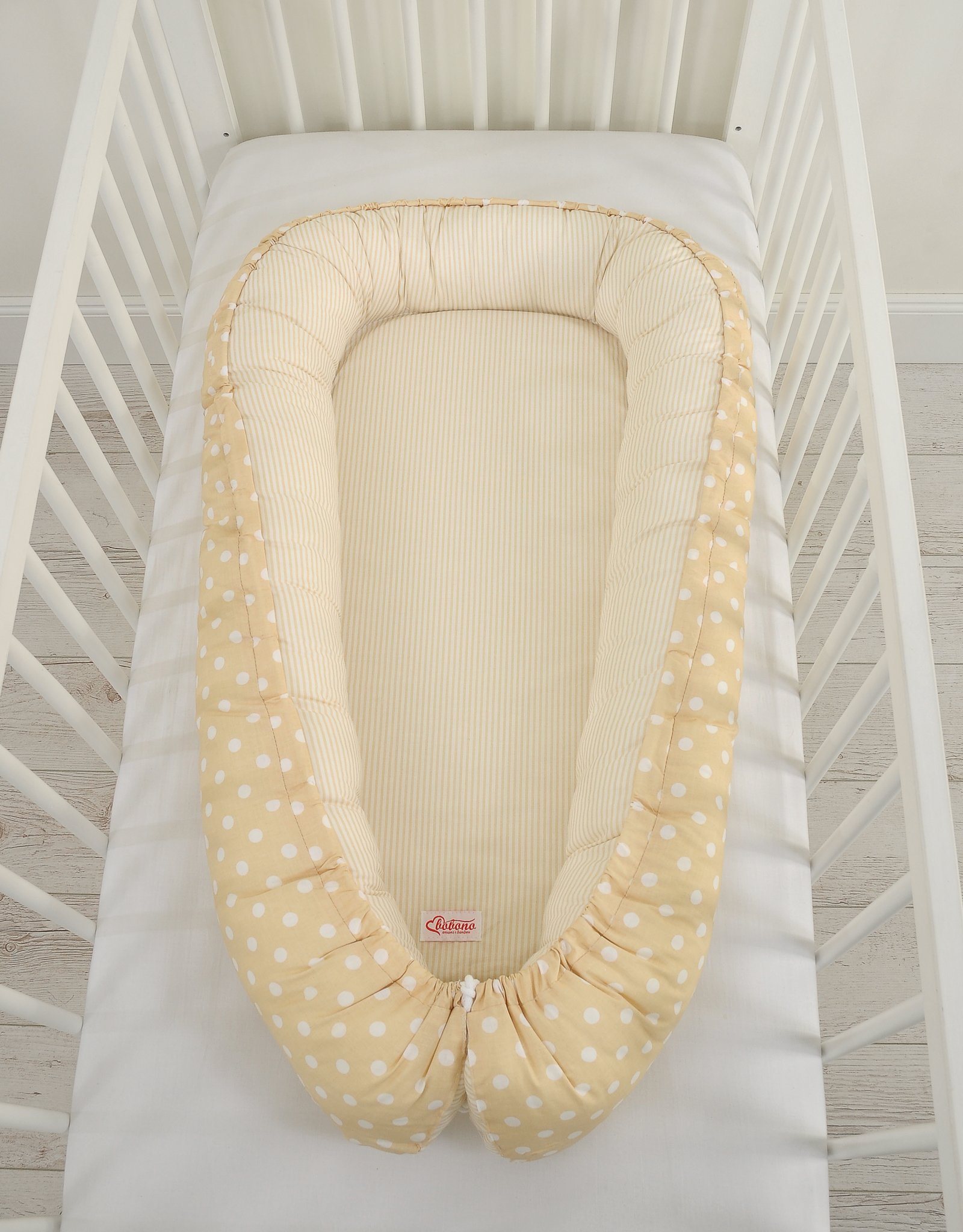 Double-sided premium baby cocoon. Made of the highest quality Okotex certified cotton fabric. Filling – also Okotex certified, without optical brighteners.