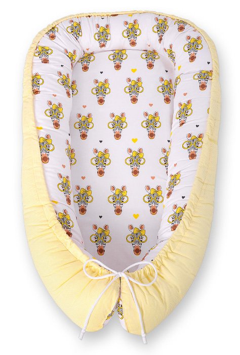 Baby nest double-sided Premium Cocoon for infants BOBONO- yellow zebras