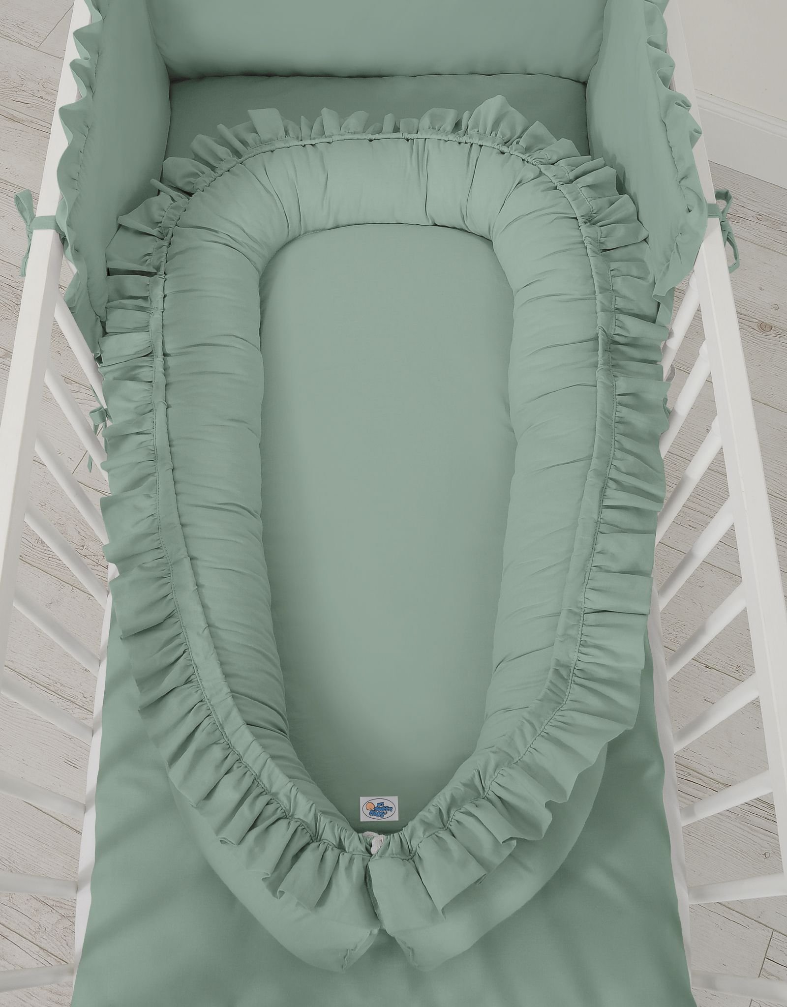 Baby nest Premium Cocoon for infants with a ruffle MY SWEET BABY- pastelgreen