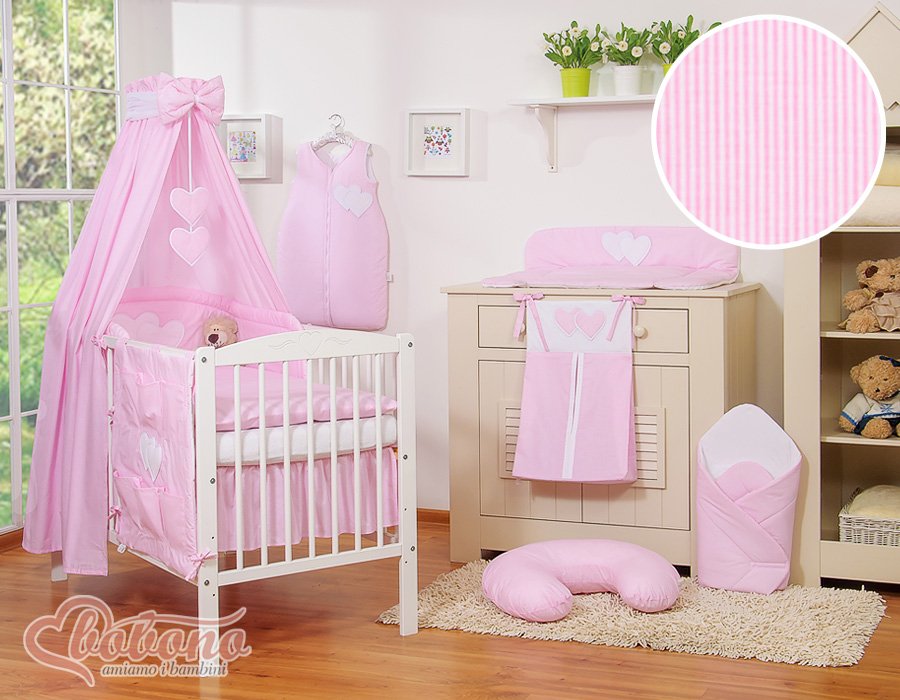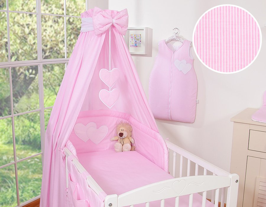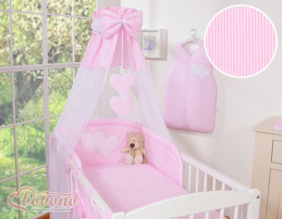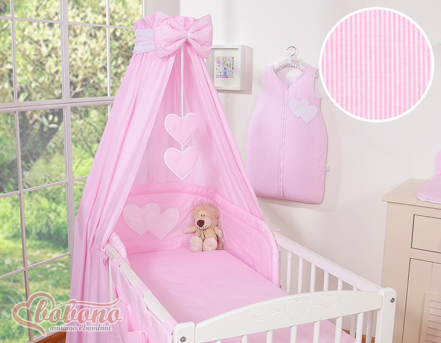 Bedding set 5-pcs with canopy- Hanging Hearts pink strips