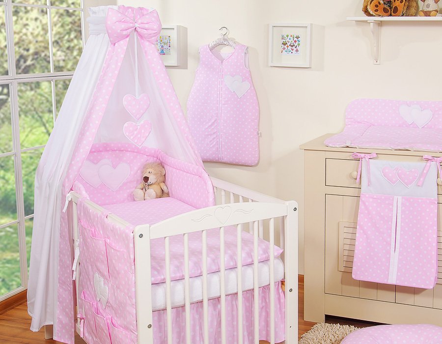 Baby bedding set 5pcs with Canopy- Collection Hanging Hearts