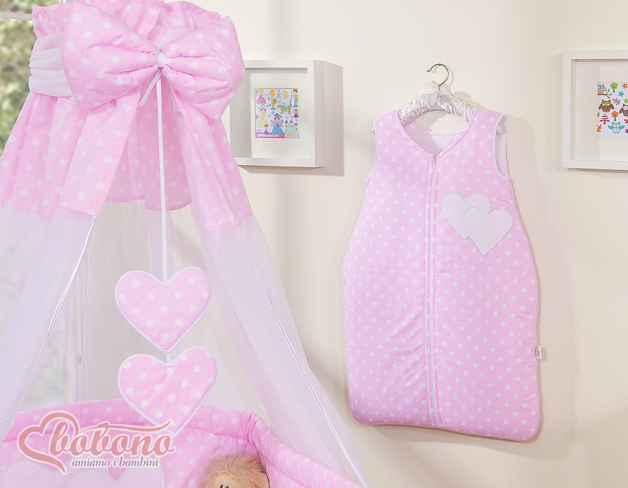Bedding set 5-pcs with canopy- Hanging Hearts white dots on pink