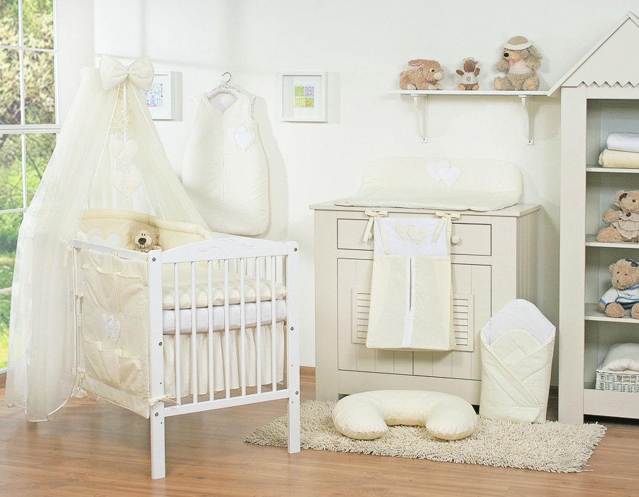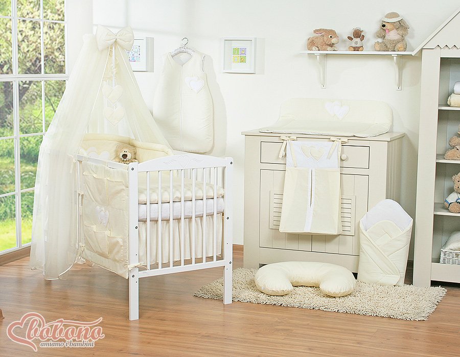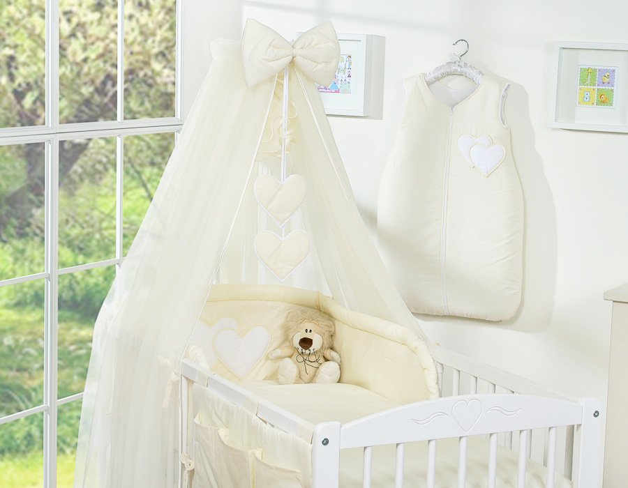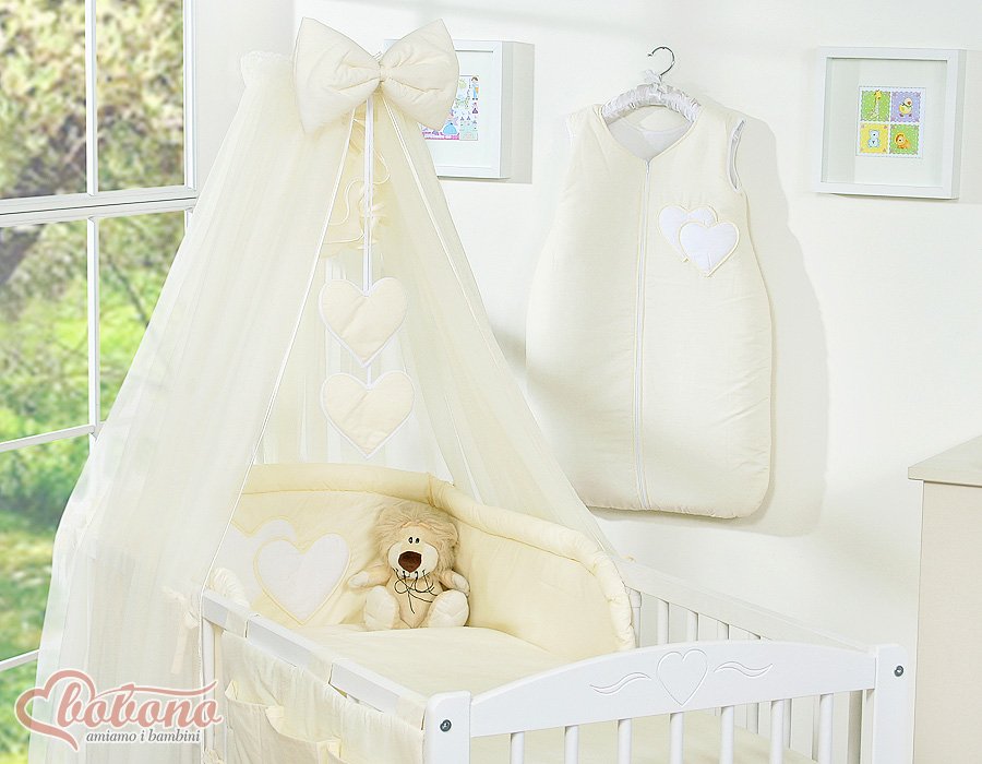 Bedding set 5-pcs with mosquito-net- Hanging Hearts cream
