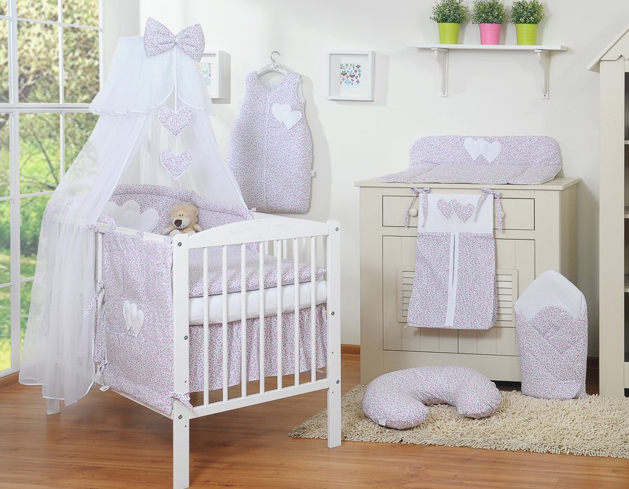 Baby bedding set 5pcs with mosquito-net- Collection Hanging Hearts