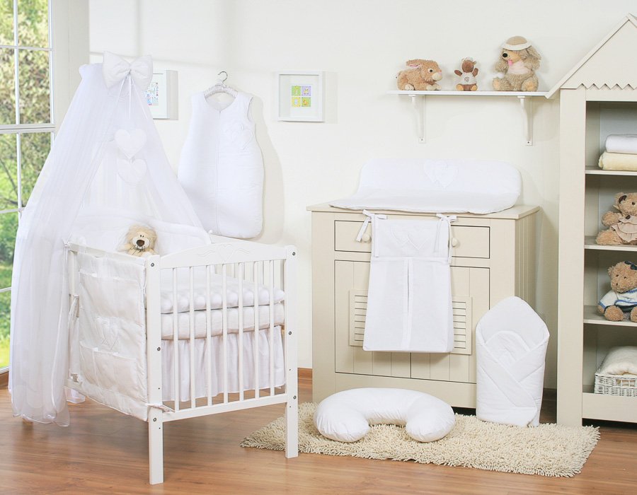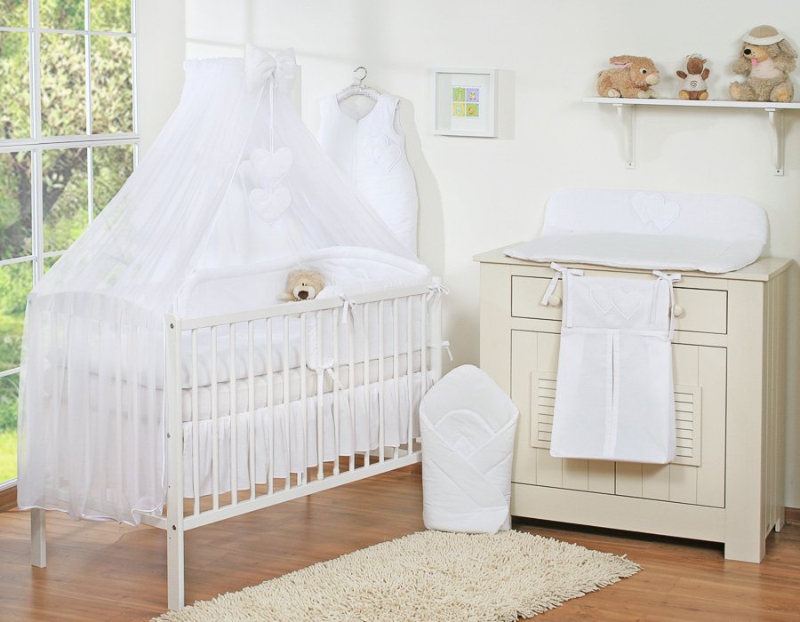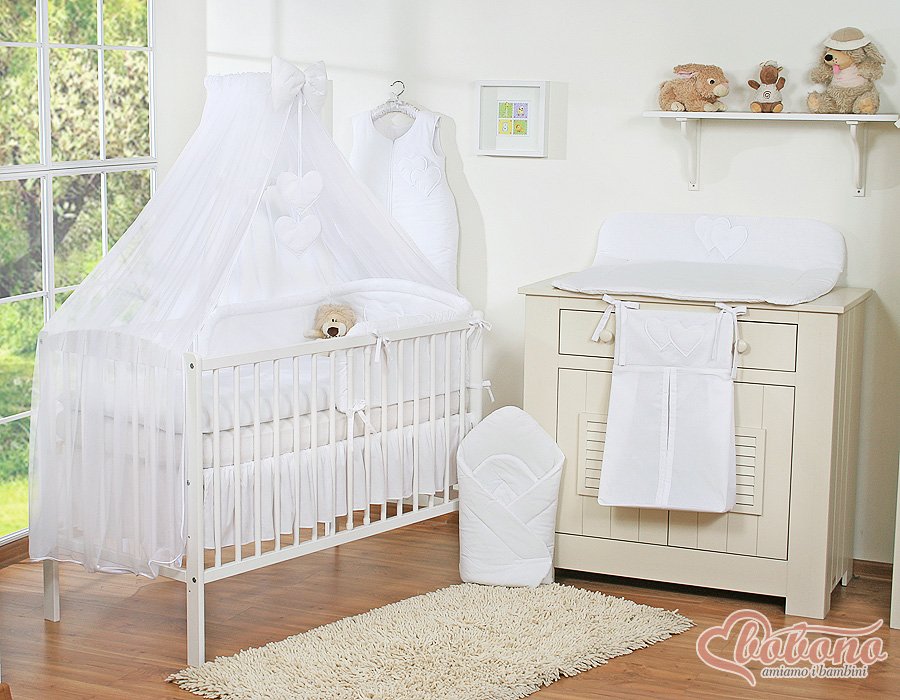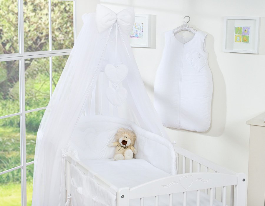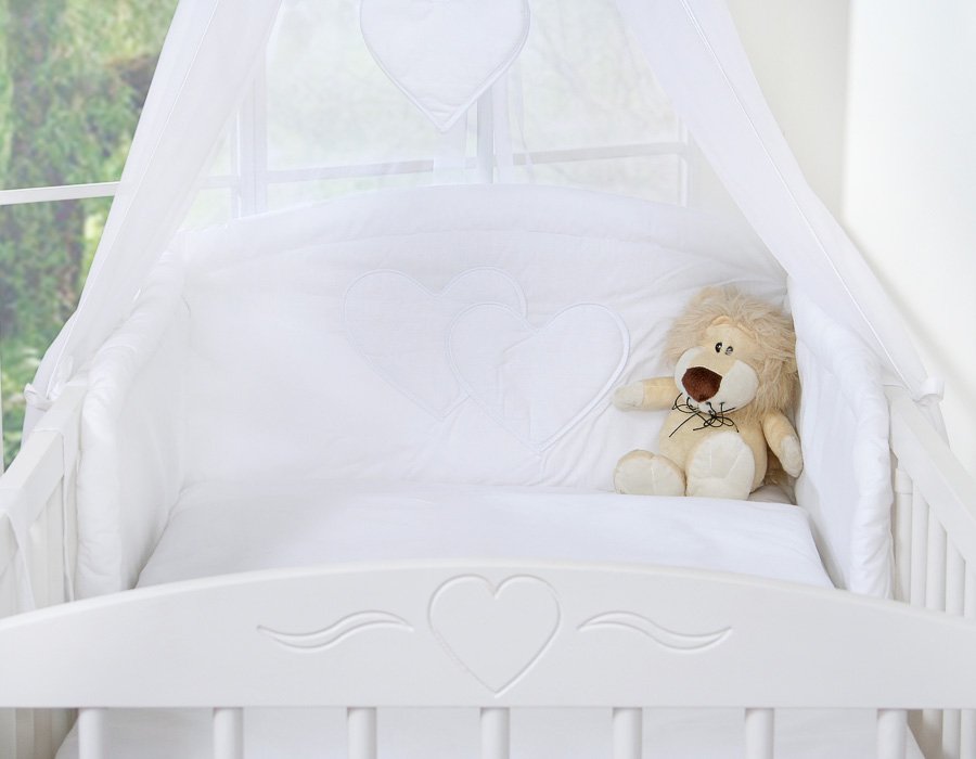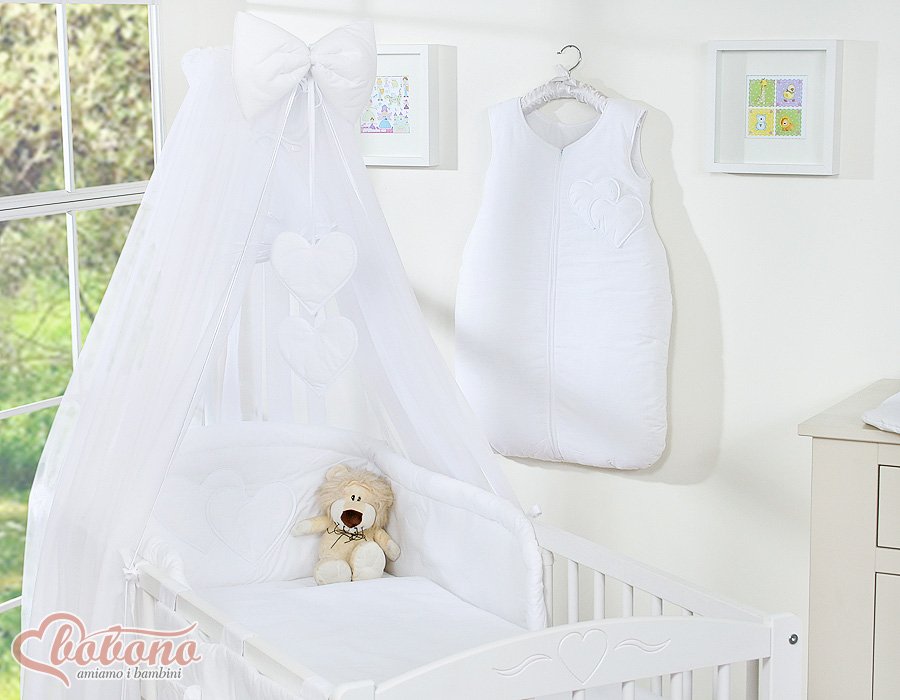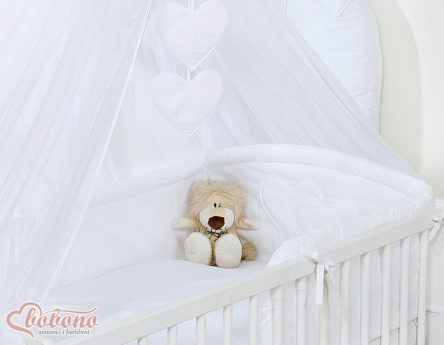Bedding set 5-pcs with mosquito-net- Hanging Hearts white