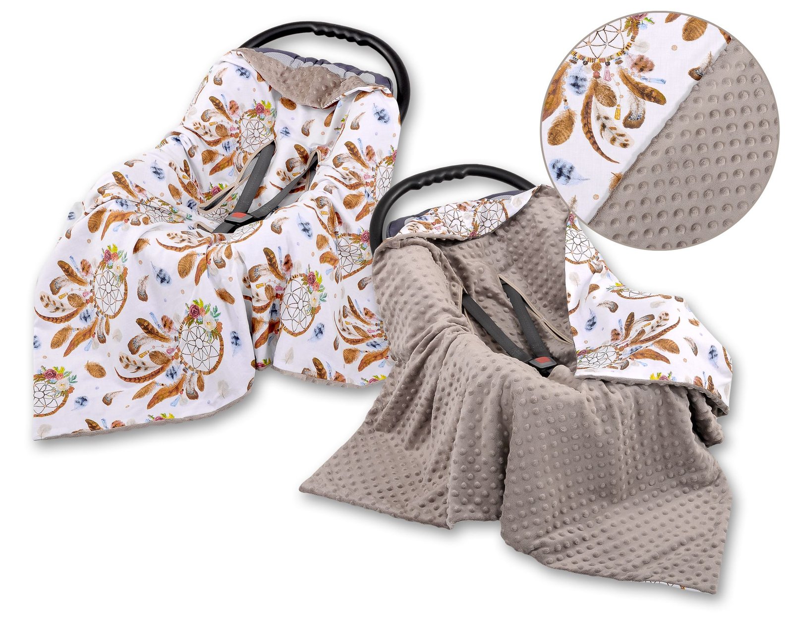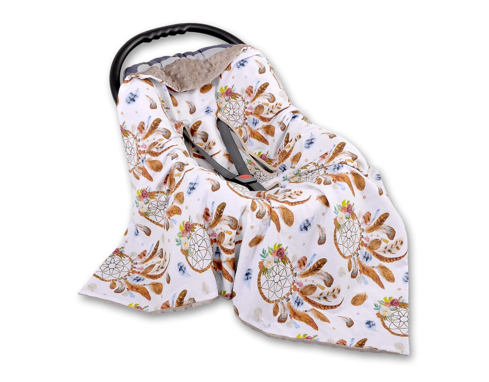 Exceptionally soft, warm cotton blanket for the car seat to ensure complete comfort for your baby during the car ride. Made from soft minky material and colourful 100% cotton.