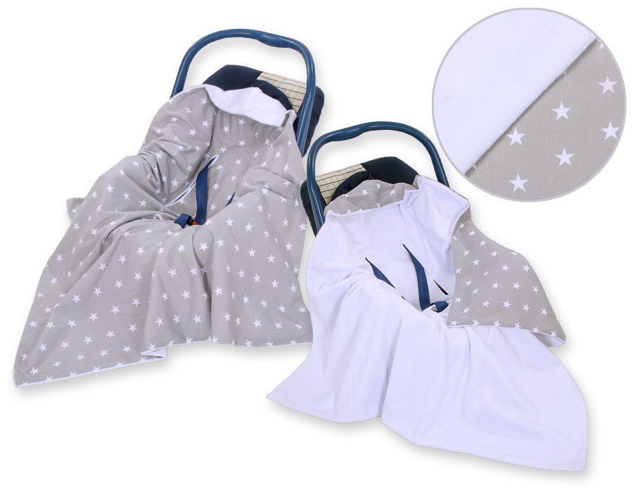 Big double-sided car seat blanket for babies – Stars grey