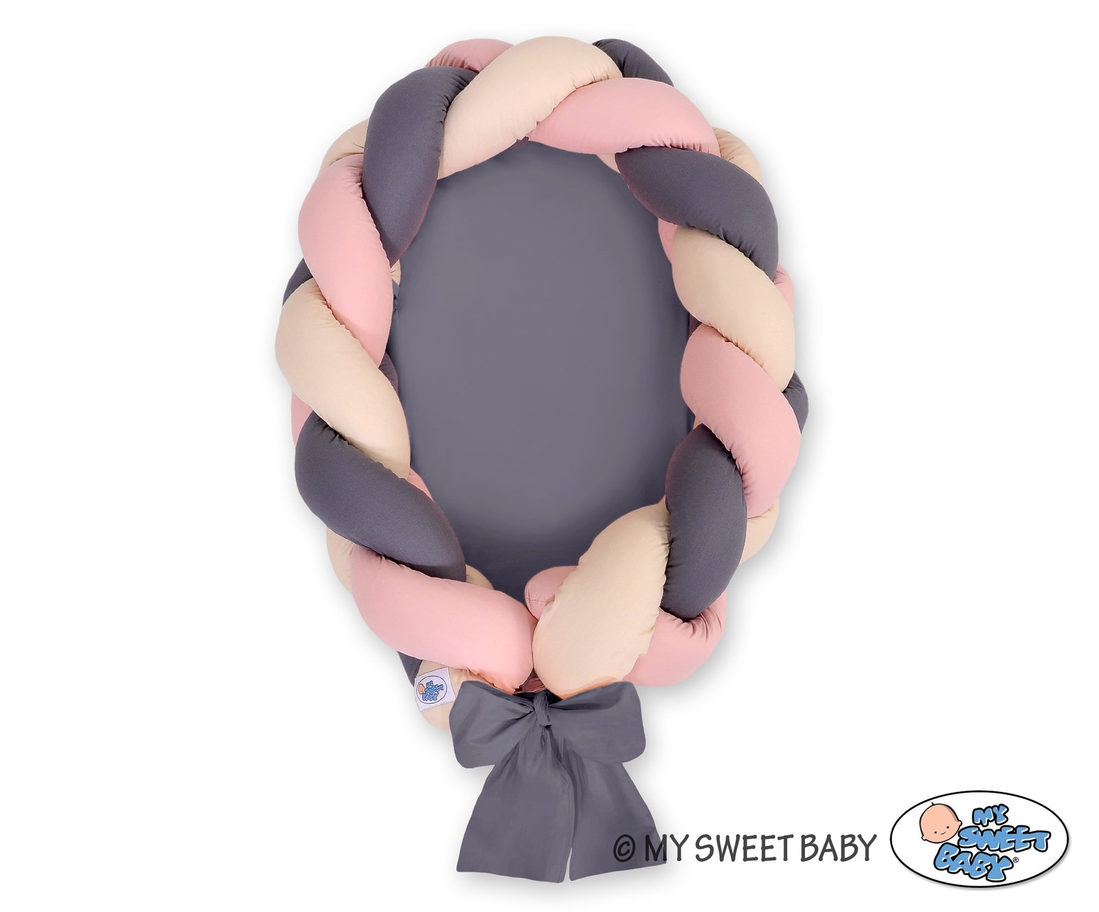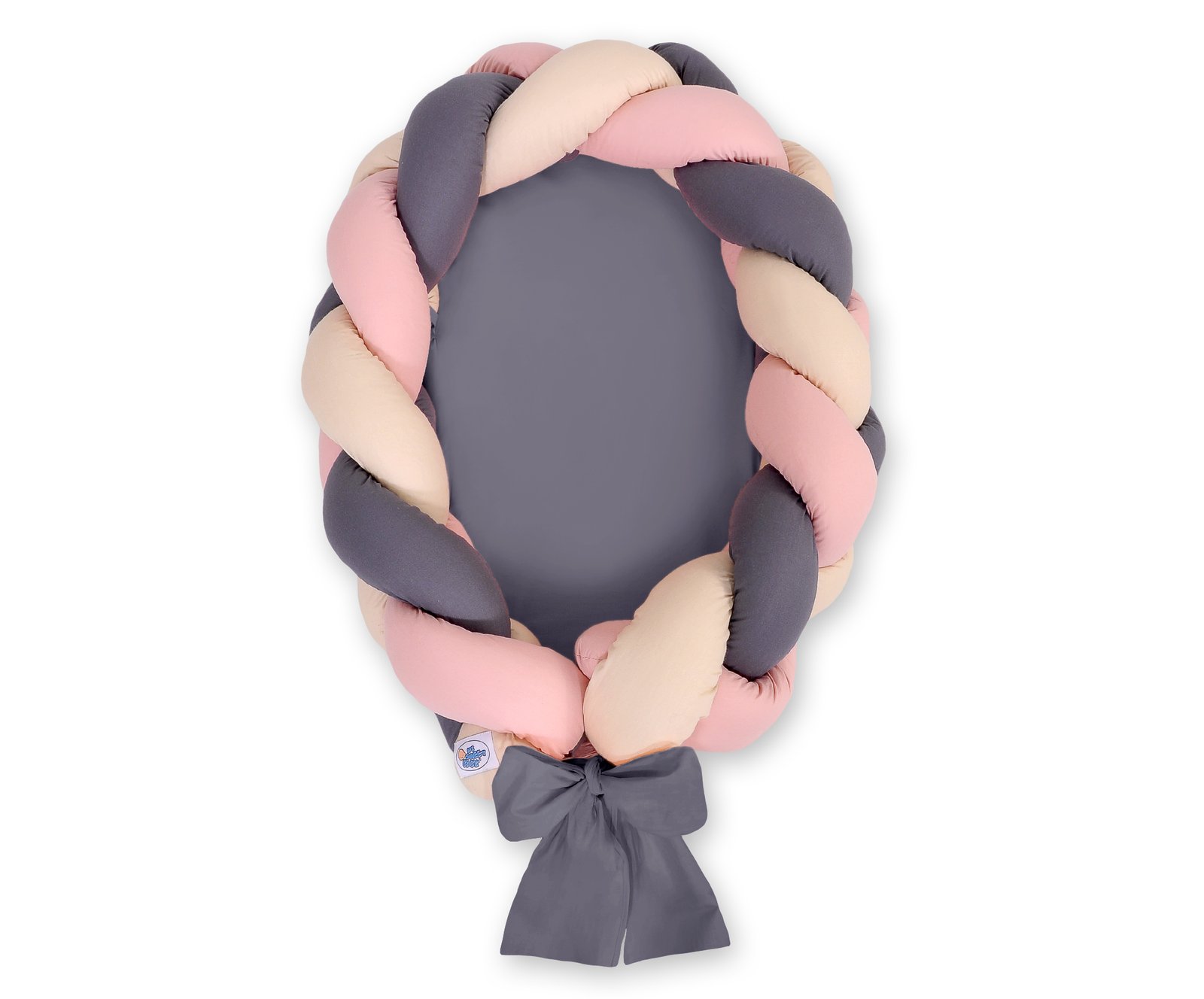 Braided baby nest 2 in 1 – beige-pastel pink-anthracite