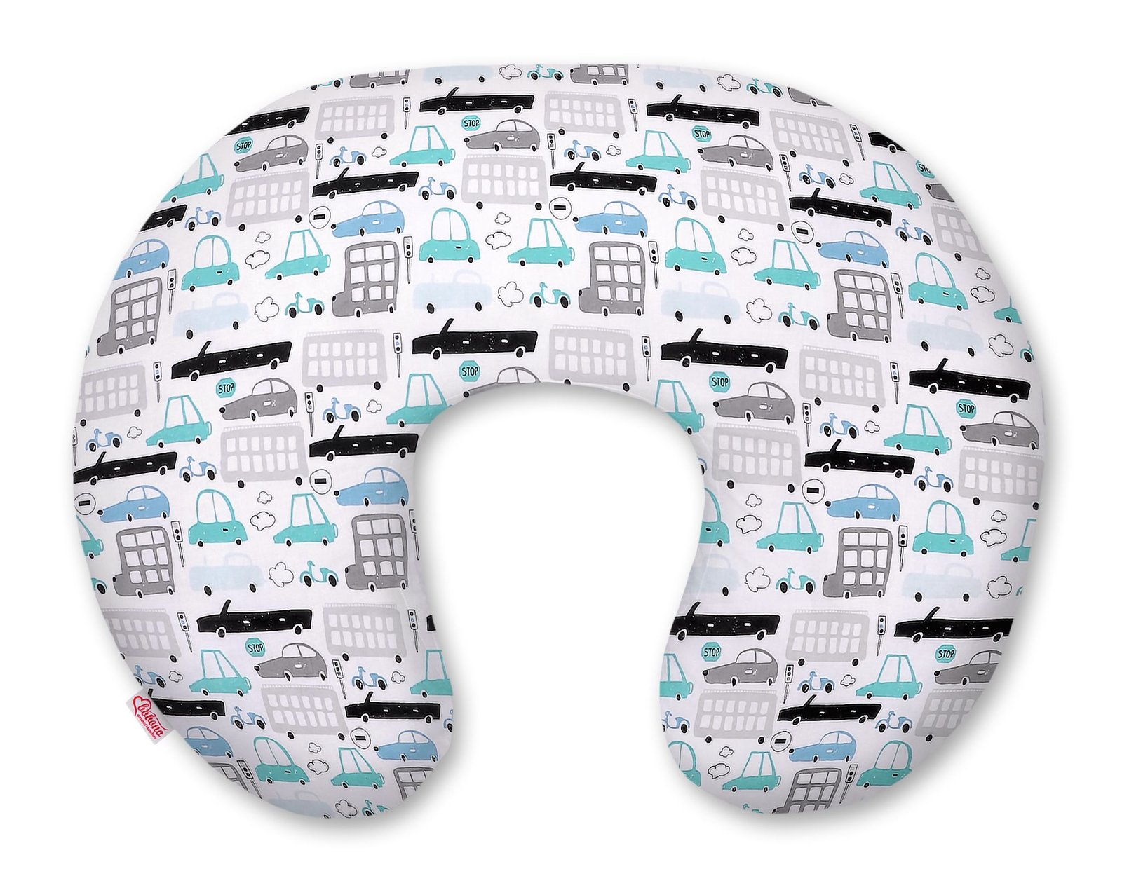 Breastfeeding Pillow Nursing Croissant Pillow, removable, Hands-Free Feedin- gray and turquoise cars