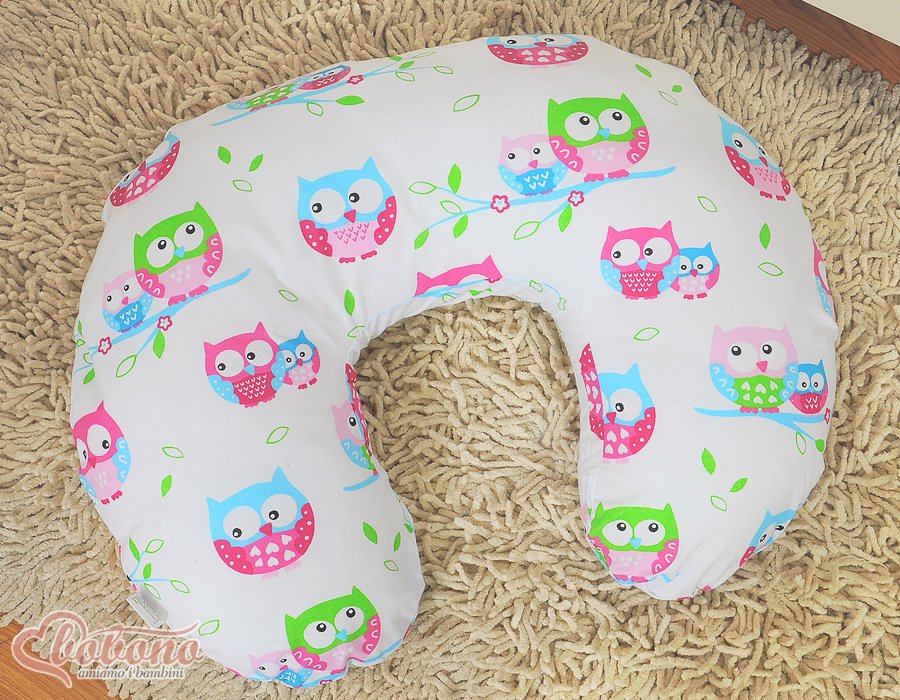 Breastfeeding Pillow Nursing Croissant Pillow, removable, Hands-Free Feeding- white owls