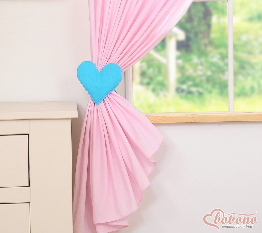 Children’s room curtains with hearts pink and turquoise
