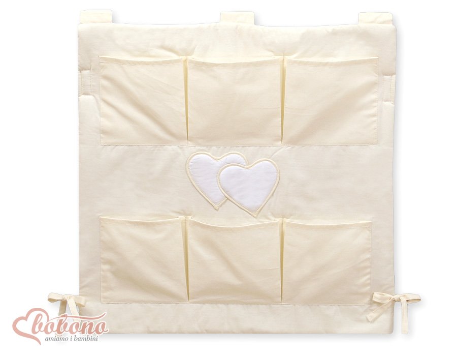 Cot tidy- Hanging Hearts cream