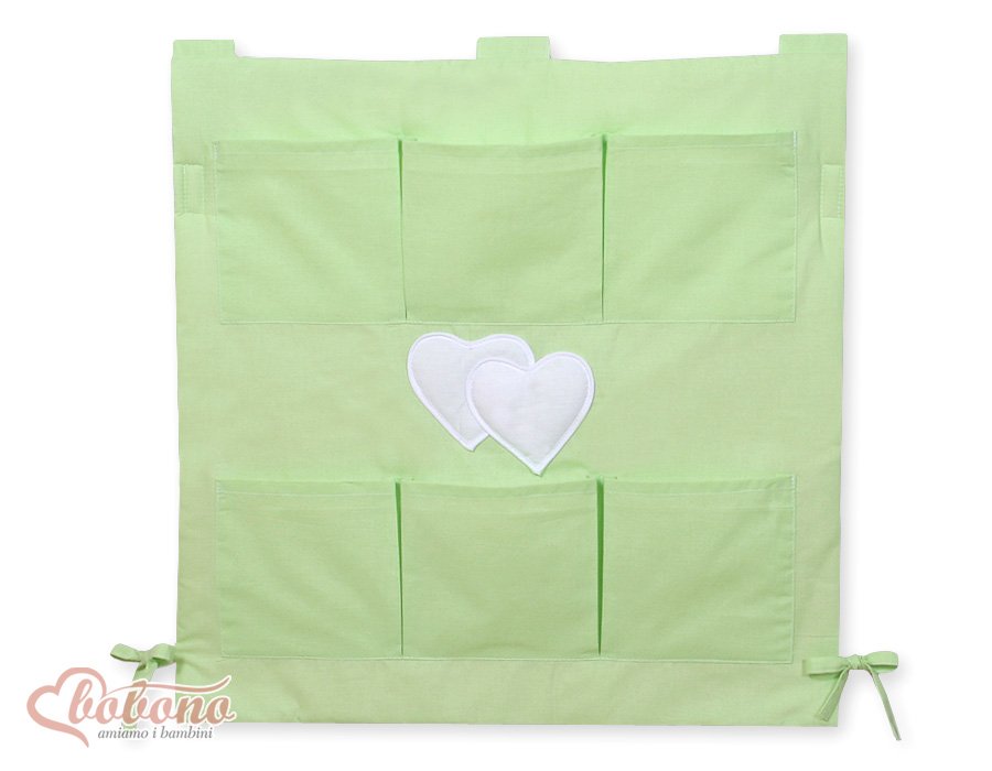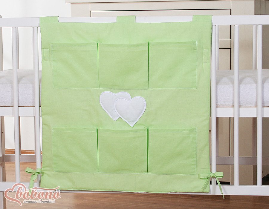 Cot tidy- Hanging Hearts green