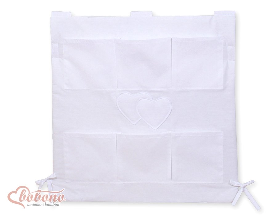 Cot tidy with 6 practical storage bags for toys, diapers, wipes, pacifiers, or any other essentials.