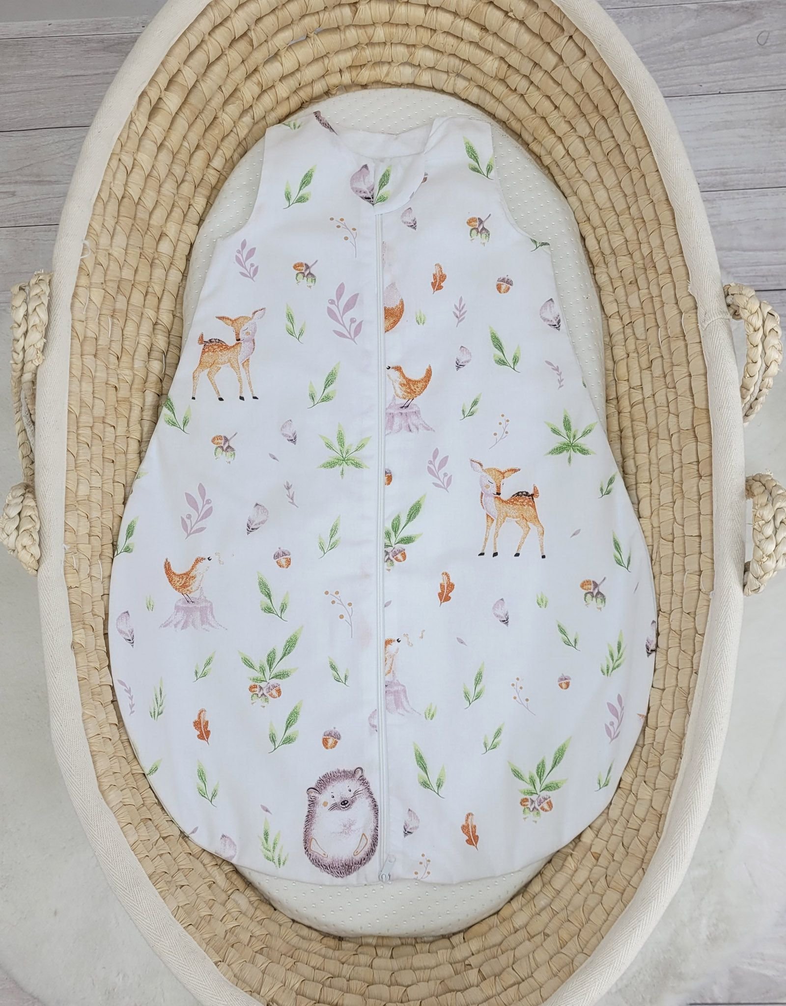 Comfortable cotton baby sleeping bag. Double layered sleeping bag with anatomical rounded shape. Sleeping bag without filling.