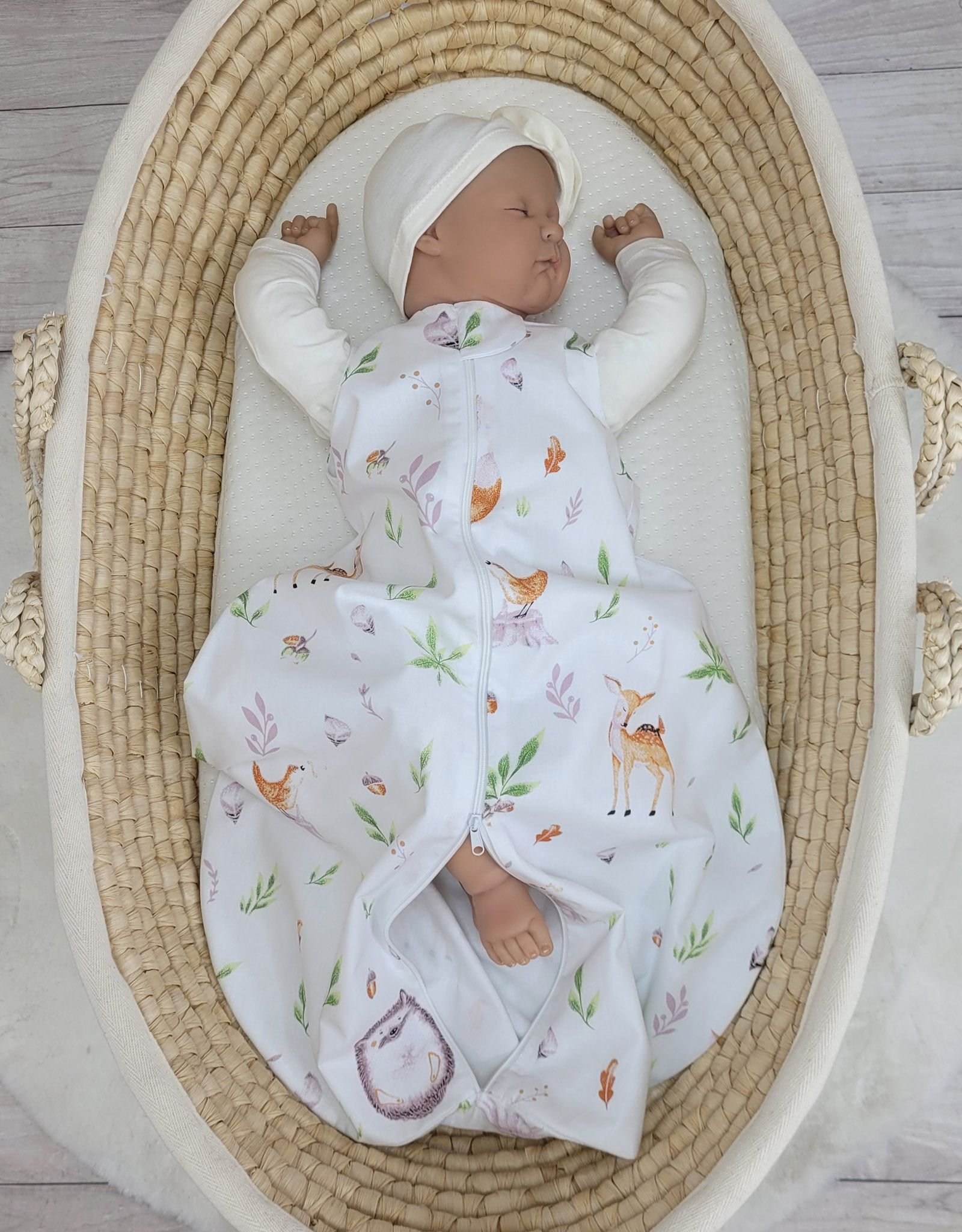 Lightweight cotton baby sleeping bag is made of durable 100% certified cotton. It is nice and pleasant to touch. It does not irritate the delicate baby skin.