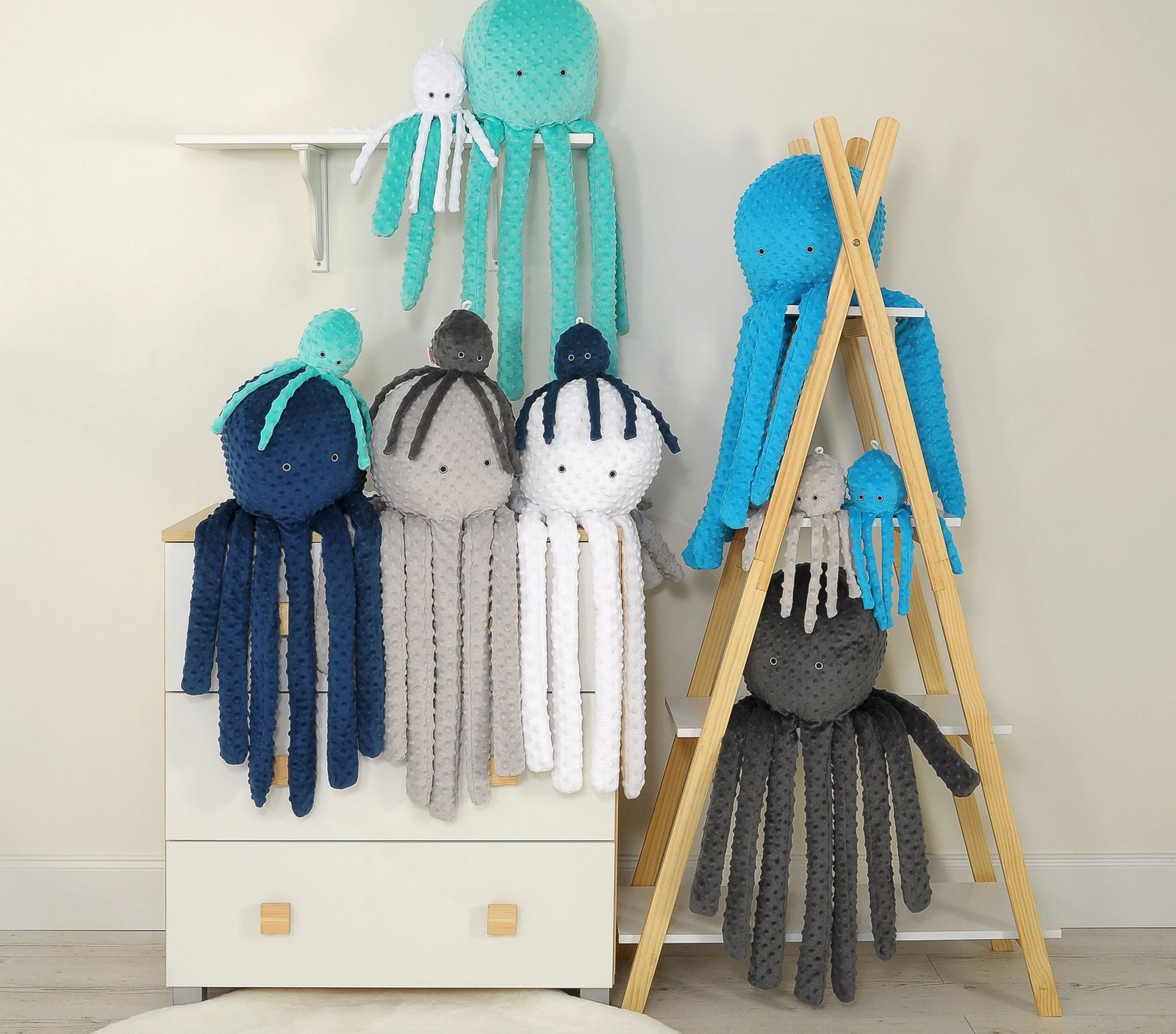 Cuddly octopus big – turquoise – polka dot minky