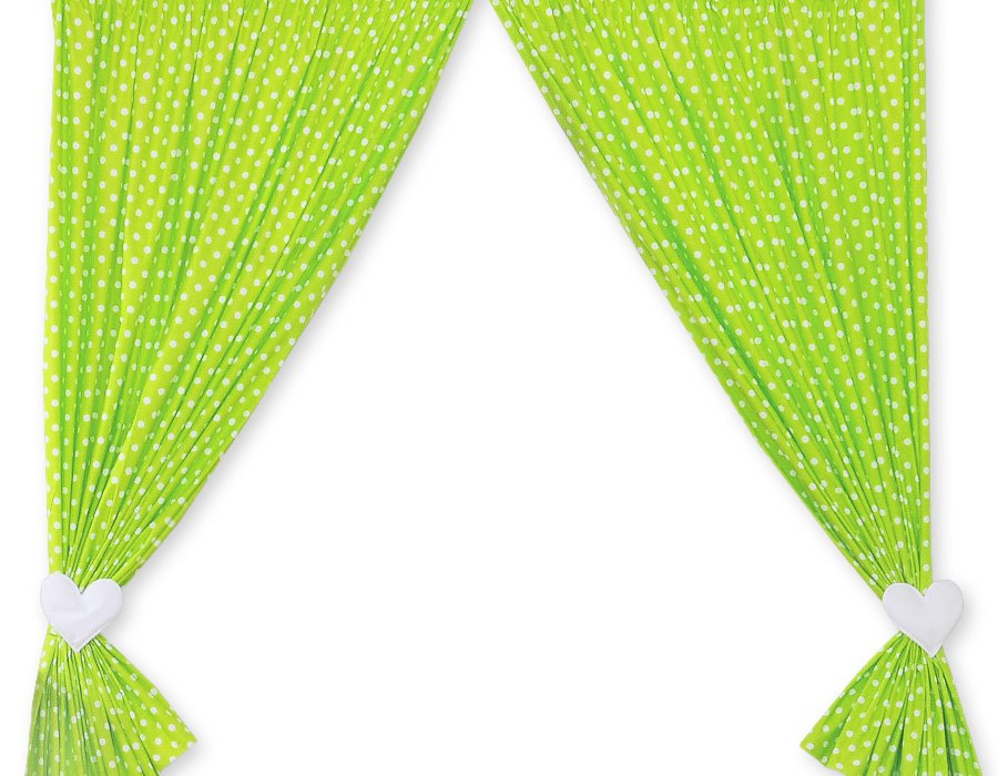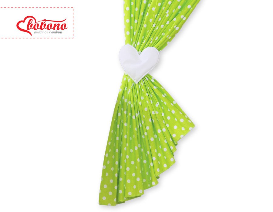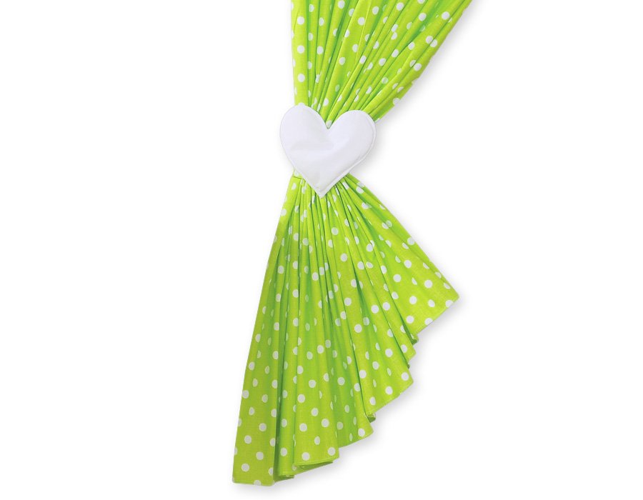 Curtains for baby room- Hanging Hearts white dots on green