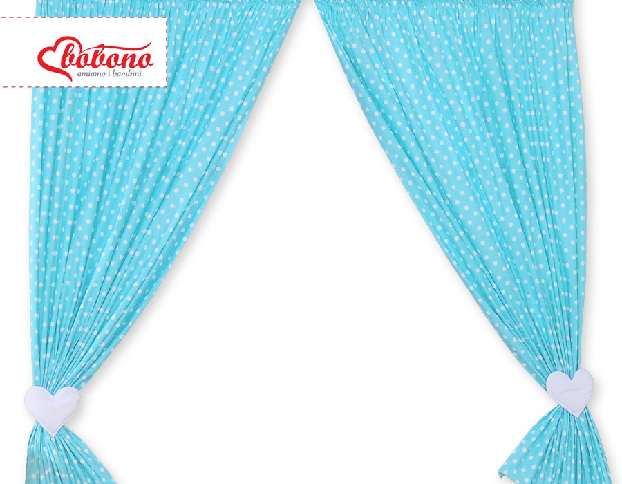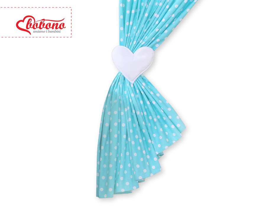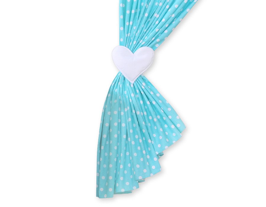 Curtains for baby room- Hanging Hearts white dots on turquoise