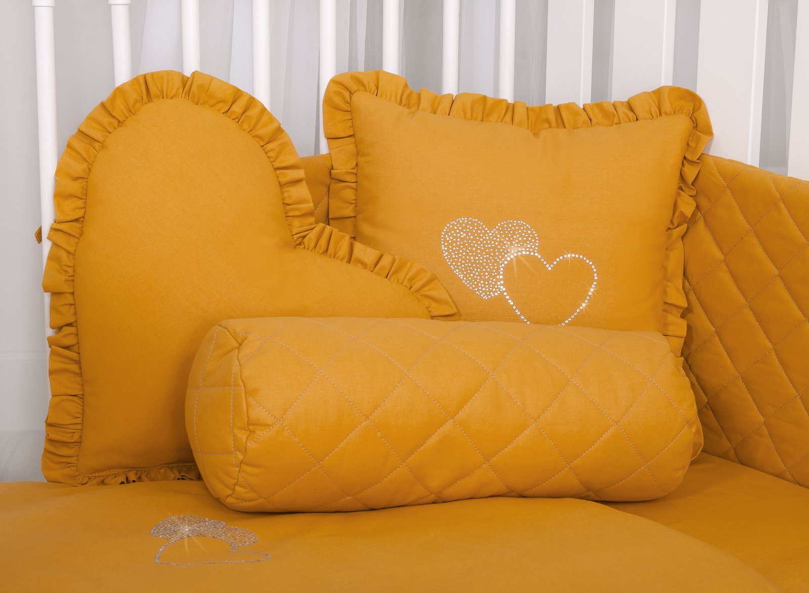 Elegant quilted pillow. Outer fabric made of certified quilted cotton (not demountable). The filling inside the pillow it is Eco Fillball- atested Silicone Balls – “artificial fluff” for pillows- filling ensures proper settlement of the baby and air circulation. It will work excellent as a decoration of the children’s room. The roller pillow is a whole- without a removable pillowcase. It is a beautiful set with our beddings.