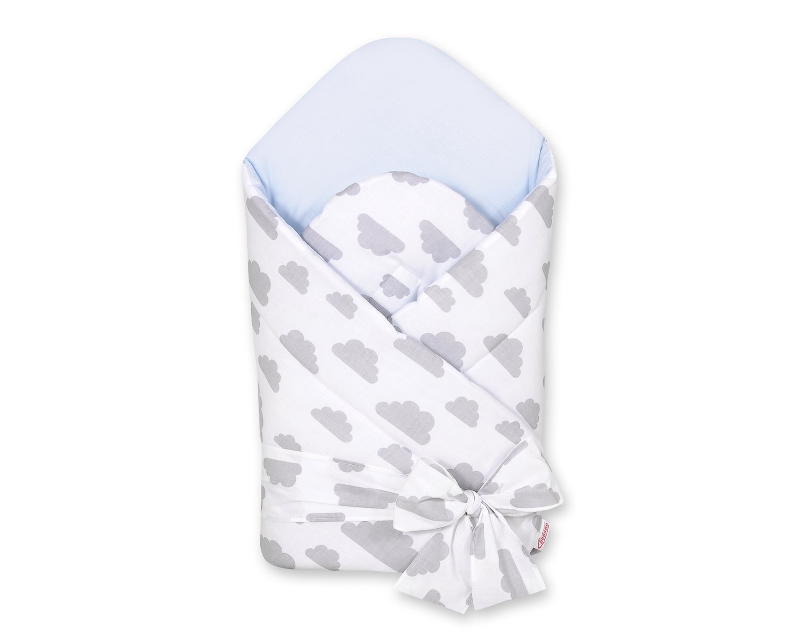Double-sided baby nest with stiffening with bow – clouds gray/blue