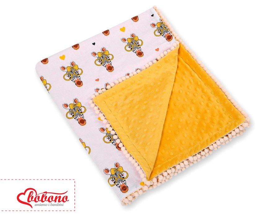 Double-sided blanket minky with pompons – yellow Zebras