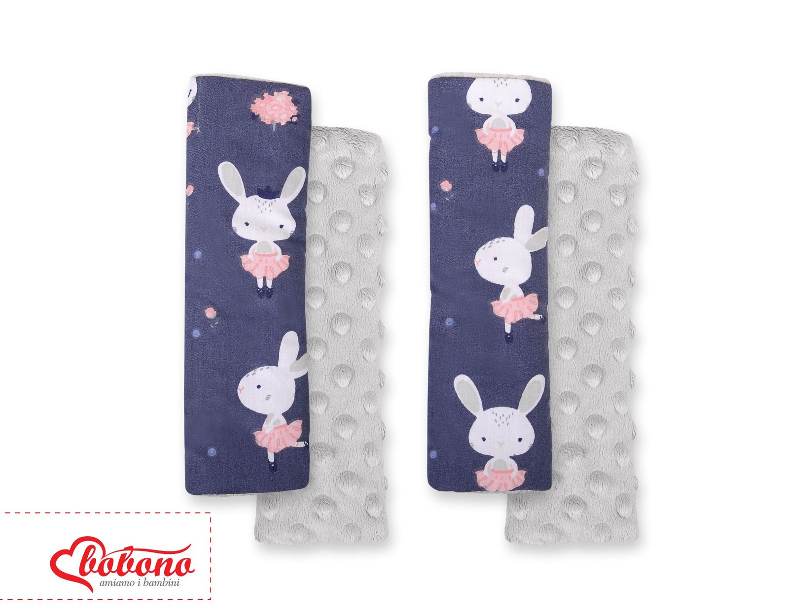 Double sided pads BOBONO for seat belts – blue rabbits/gray