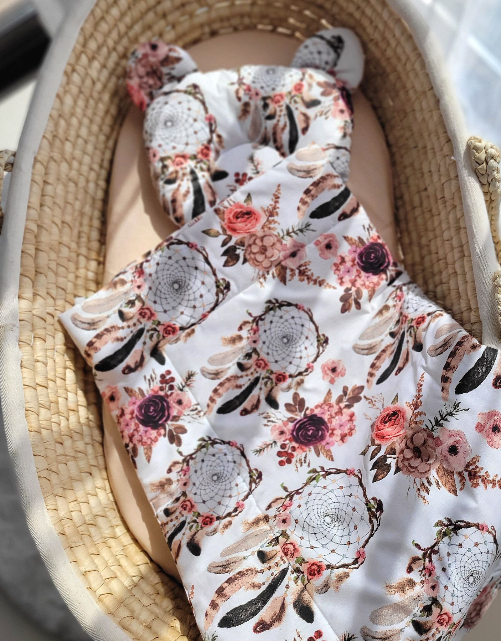 Baby bedding for pram gondola, Moses basket or cot. Made of durable 100% certified cotton. It is nice and pleasant to the touch. Does not irritate your baby’s delicate skin.