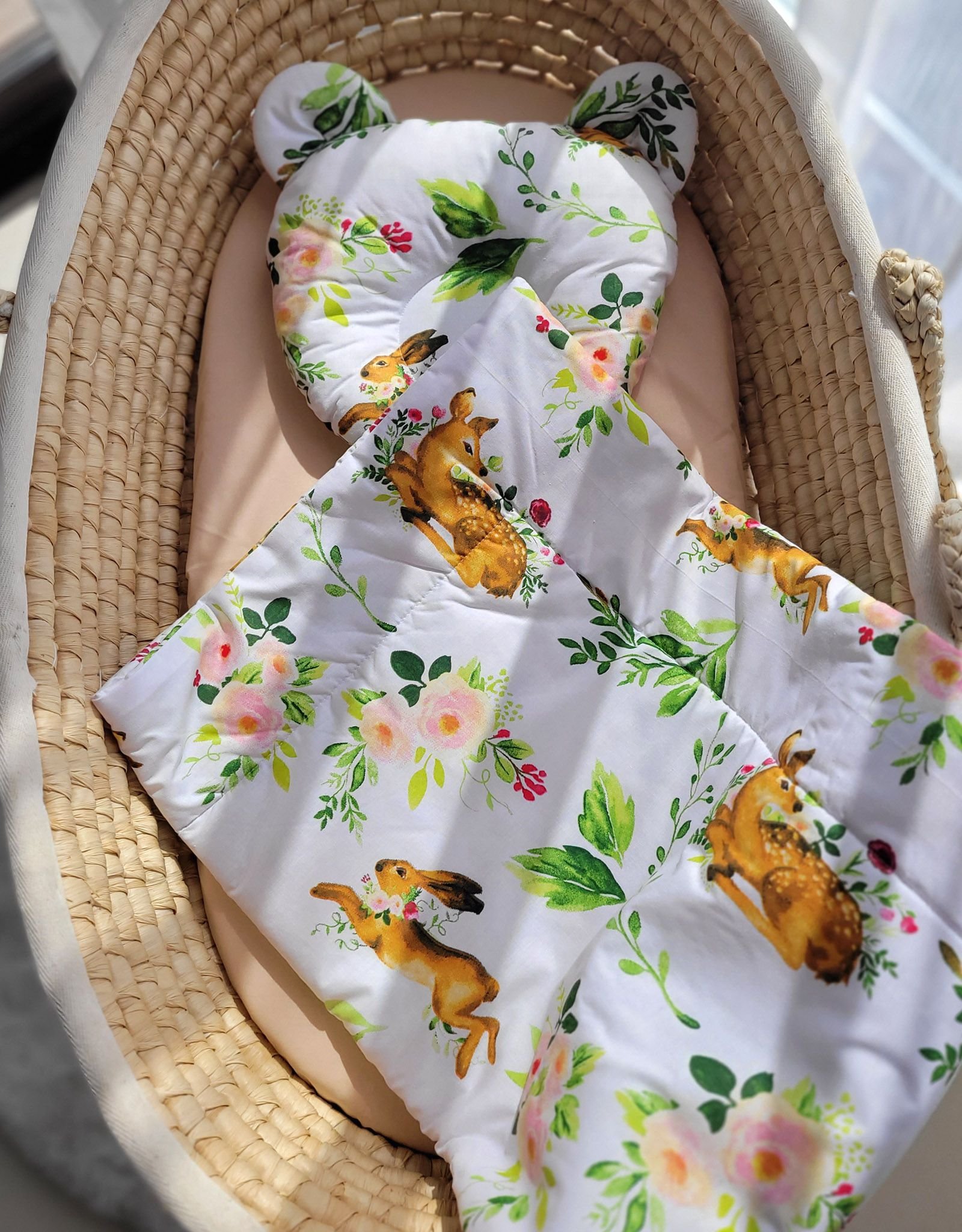Baby bedding for pram gondola, Moses basket or cot. Made of durable 100% certified cotton. It is nice and pleasant to the touch. Does not irritate your baby’s delicate skin.