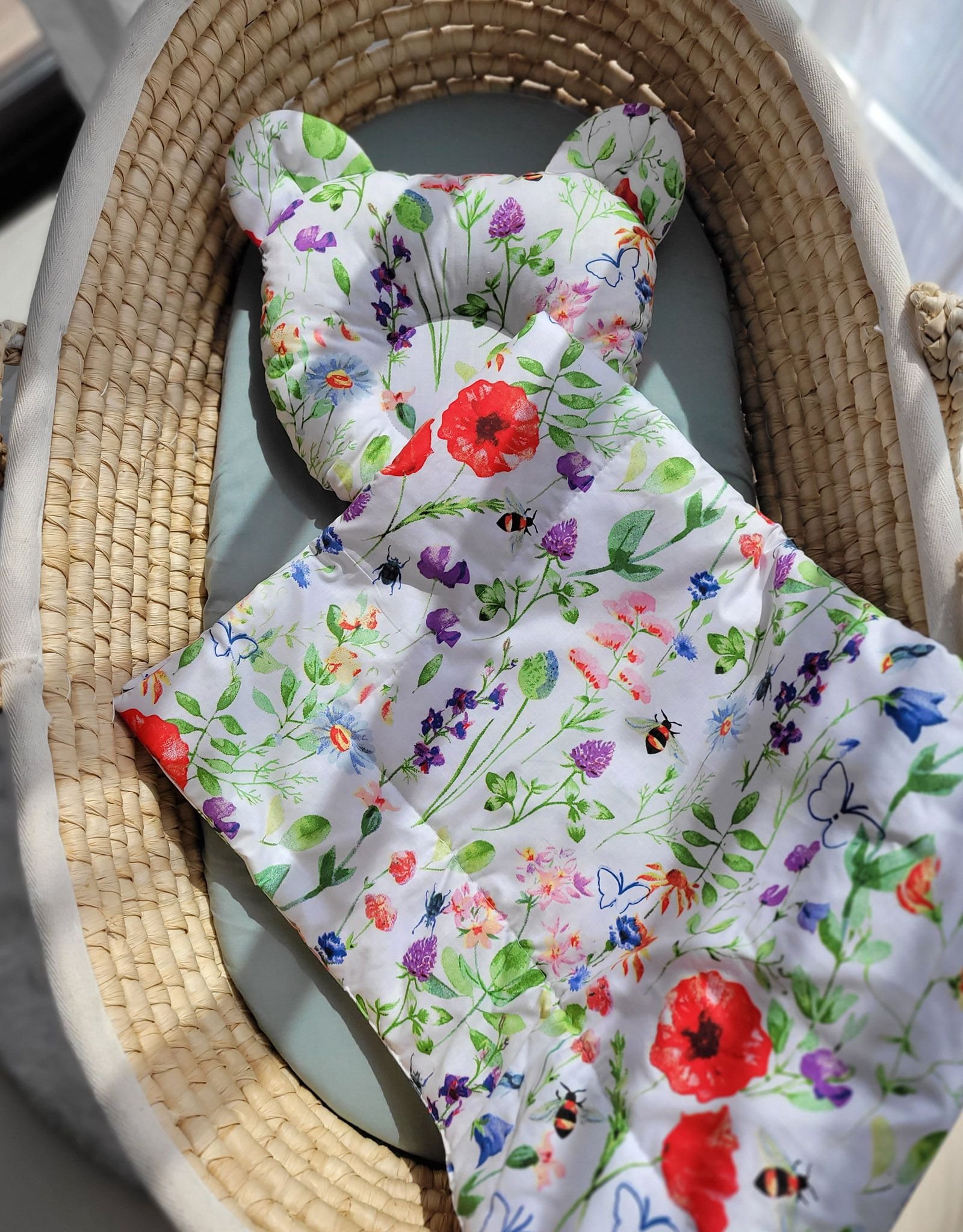 Baby bedding for pram gondola, Moses basket or cot. Made of durable 100% certified cotton. It is nice and pleasant to the touch. Does not irritate your baby’s delicate skin.