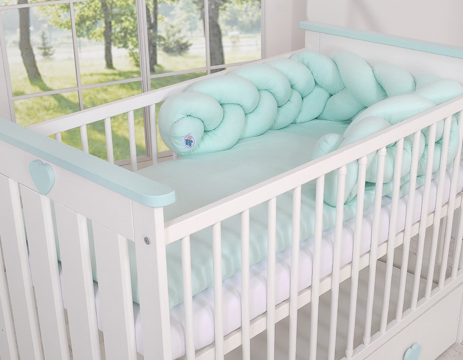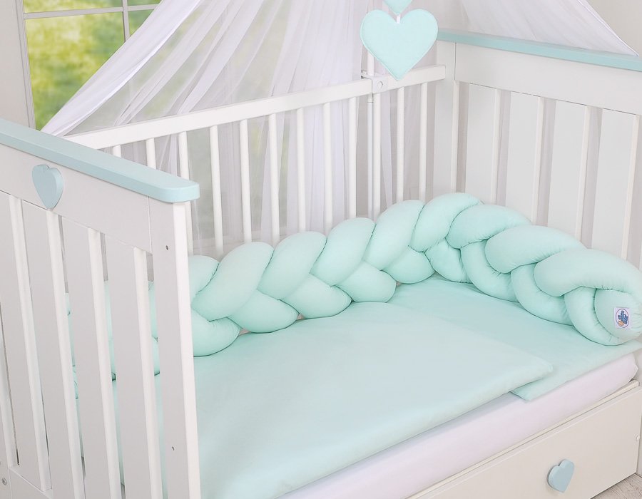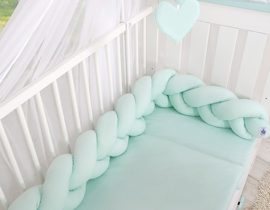 Beautiful, very soft braided cot bumper made from 100% cotton. Can be fixed to the bars.