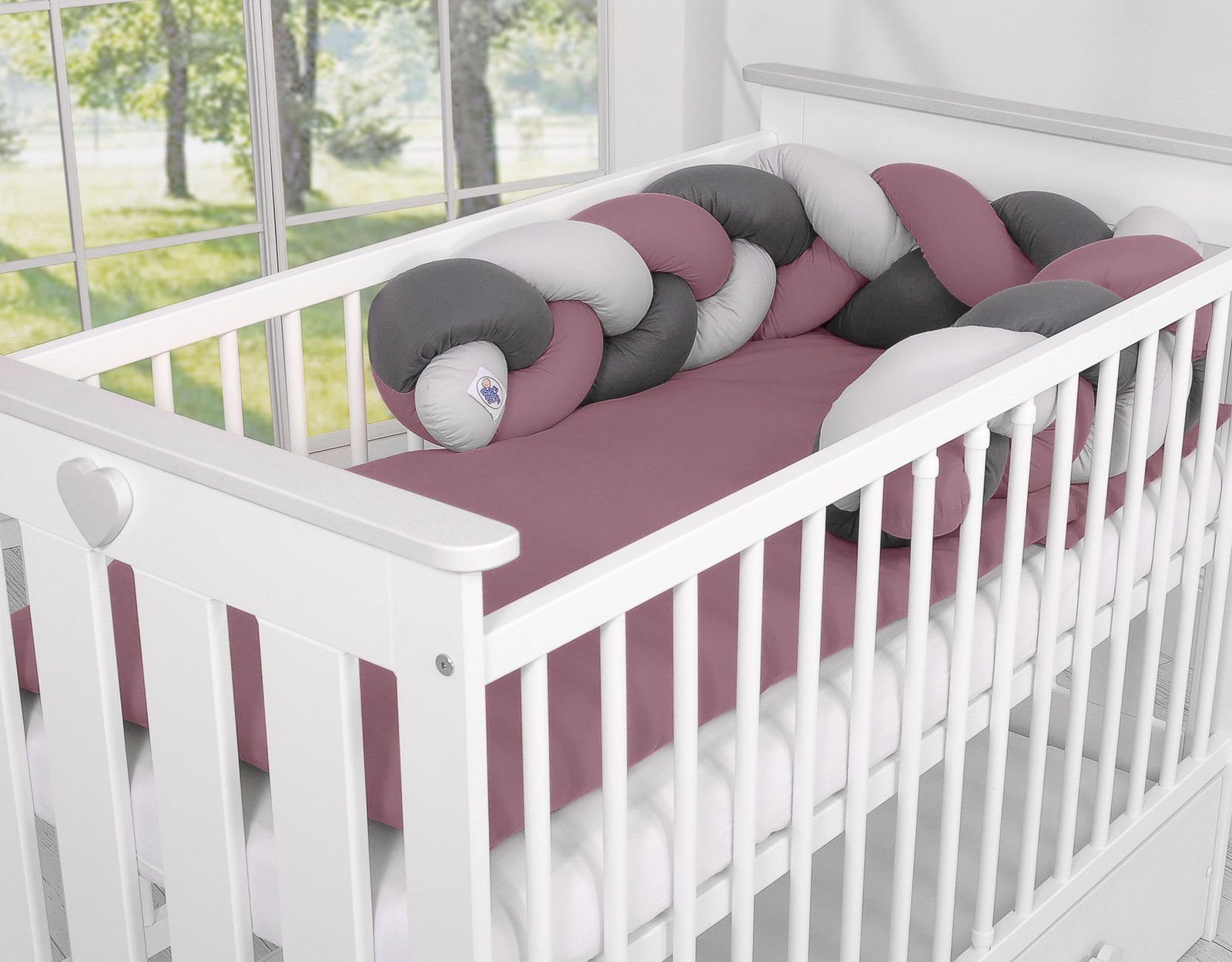 Beautiful, very soft braided cot bumper made from 100% cotton. Can be fixed to the bars.